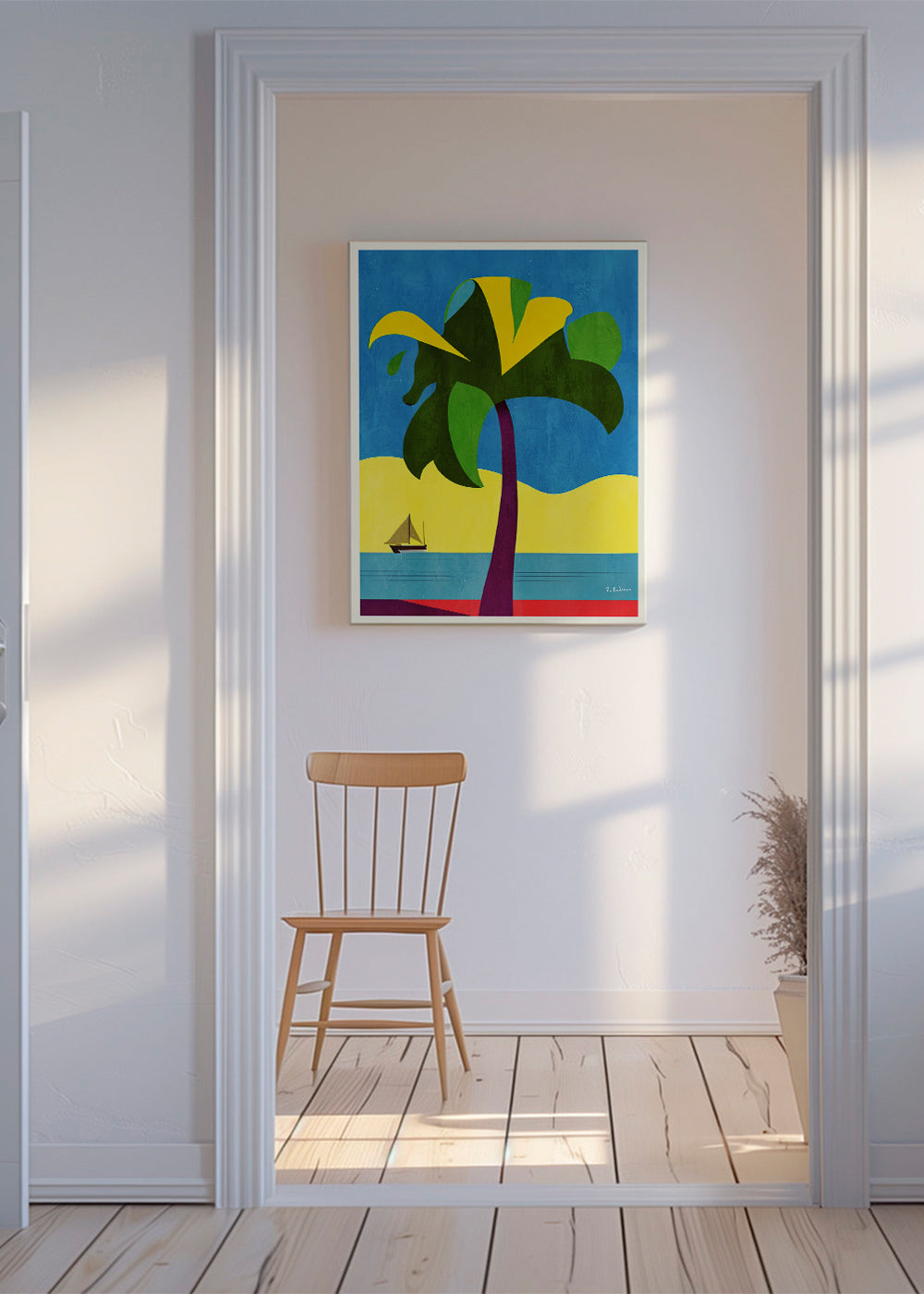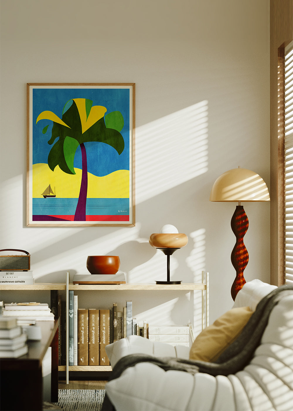 Un póster con inspiración en nuestra colección de posters y láminas retro y vintage, hecha por Bo Anderson, con pigmentos azules, y de formato vertical. Si estás buscando un elemento retro para añadir a la decoración, este diseño es ideal para ti. Combínalo con otros posters vintage para conseguir un estilo súper original. Deja que el arte inunde tu hogar.