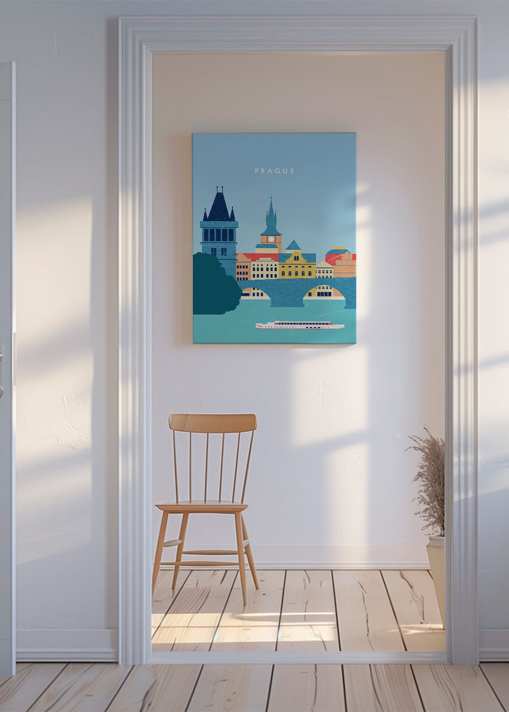 Bonito diseño del estilo de nuestros cuadros de viajes, de Katinka Reinke, con matices de colores azules, y con orientación vertical. Un cuadro ideal para los viajeros empedernidos. Combínalo con otros de nuestros cuadros de mapas y ciudades. Cambia de aires una estancia únicamente añadiendo cuadros a sus paredes.