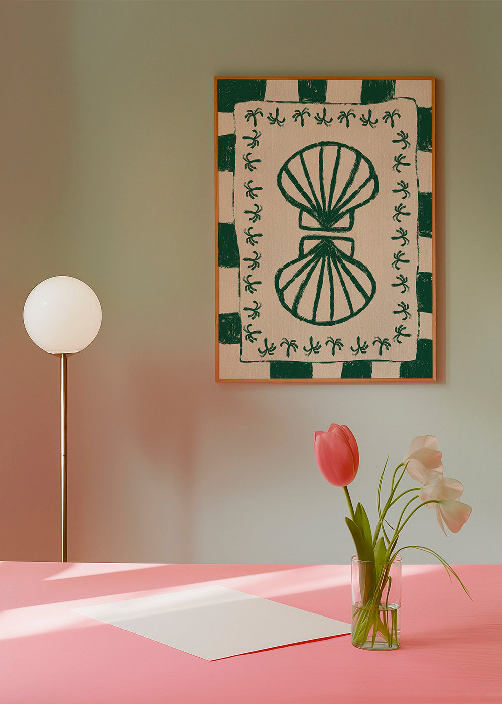 Una lámina de nuestra categoría de cuadros del mar, perteneciente a la colección de Shatha Dafai, con pigmentos verdes, y para colocar en posición vertical. Las ilustraciones son una de las formas más claras del arte, este es un diseño que no dejará a nadie indiferente. Añade un poco de arte a la decoración de tu hogar.
