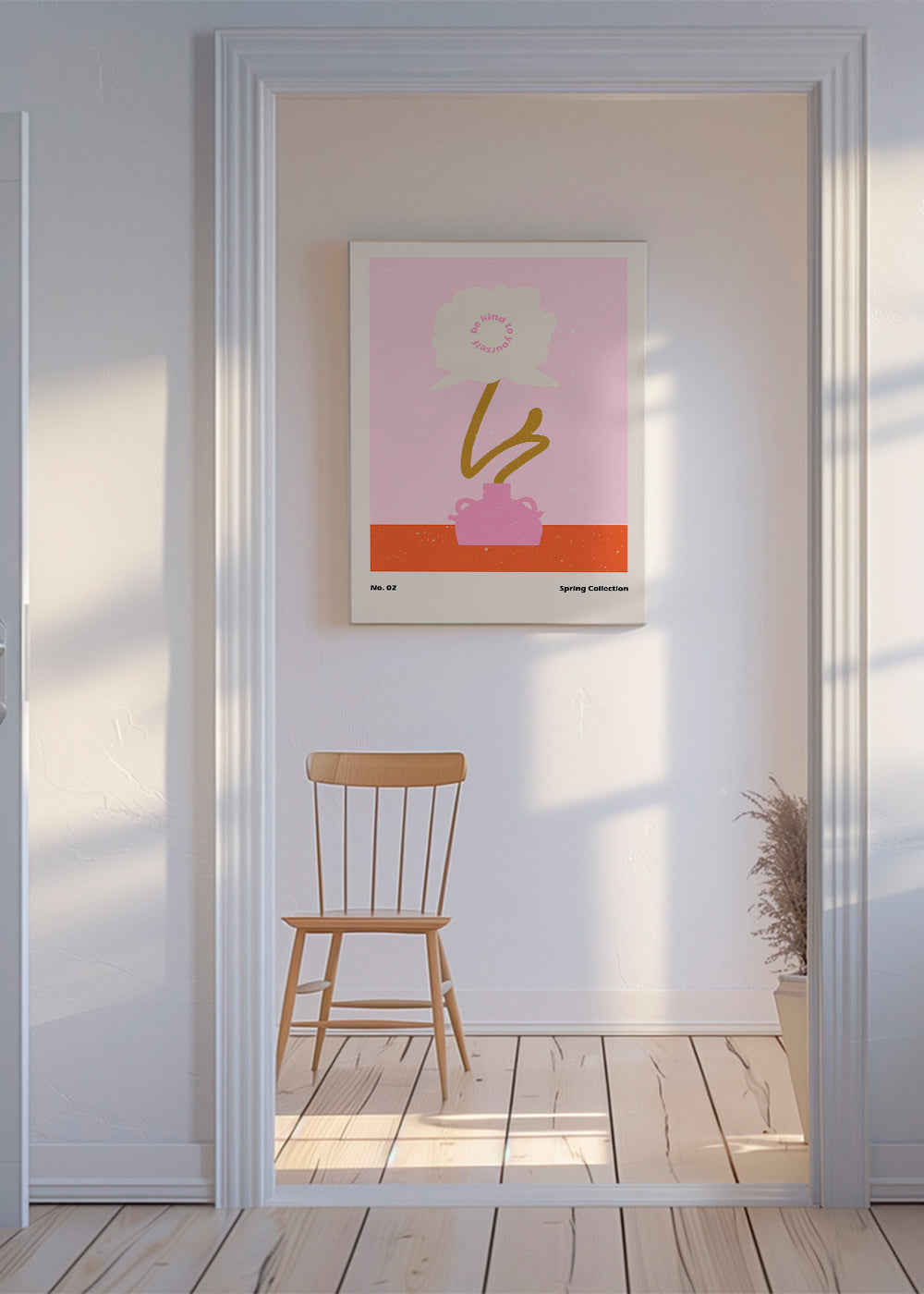 Esta pieza del estilo de nuestros cuadros de flores y plantas, de matices rosas, y ideal para poner en posición vertical. Se trata de una ilustración de estilo sencillo y limpio, combínala con otras ilustraciones para obtener una composición artística. Construye un hogar que respira diseño y creatividad.