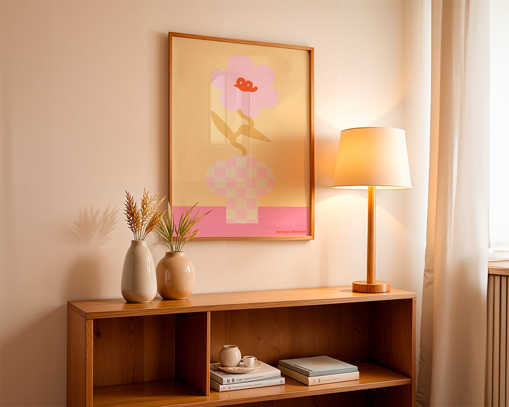 - Enmarcado gratuito: al escoger un marco, recibirás tus cuadros enmarcados y listos para colgar.