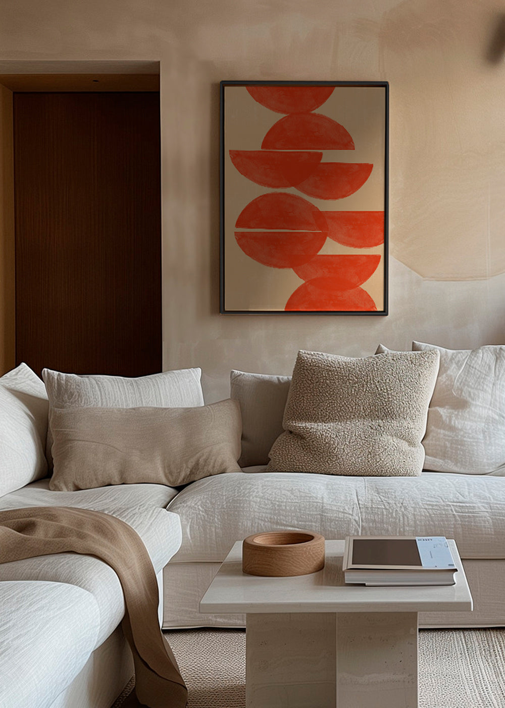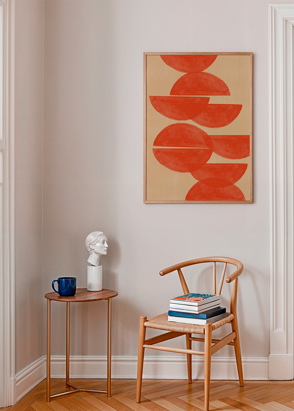 Esta obra de la colección cuadros geométricos, en tonos rojos, y orientada en vertical. Las formas geométricas y abstractas ayudan a crear un ambiente desenfadado y creativo. Llena tus paredes de arte.