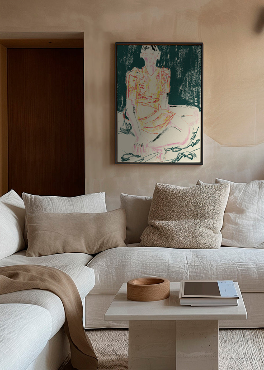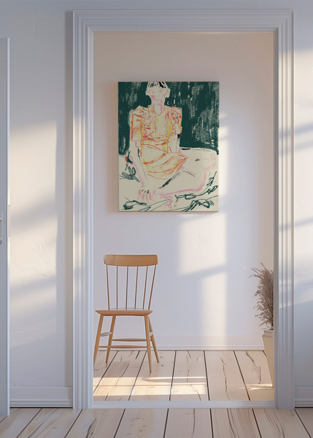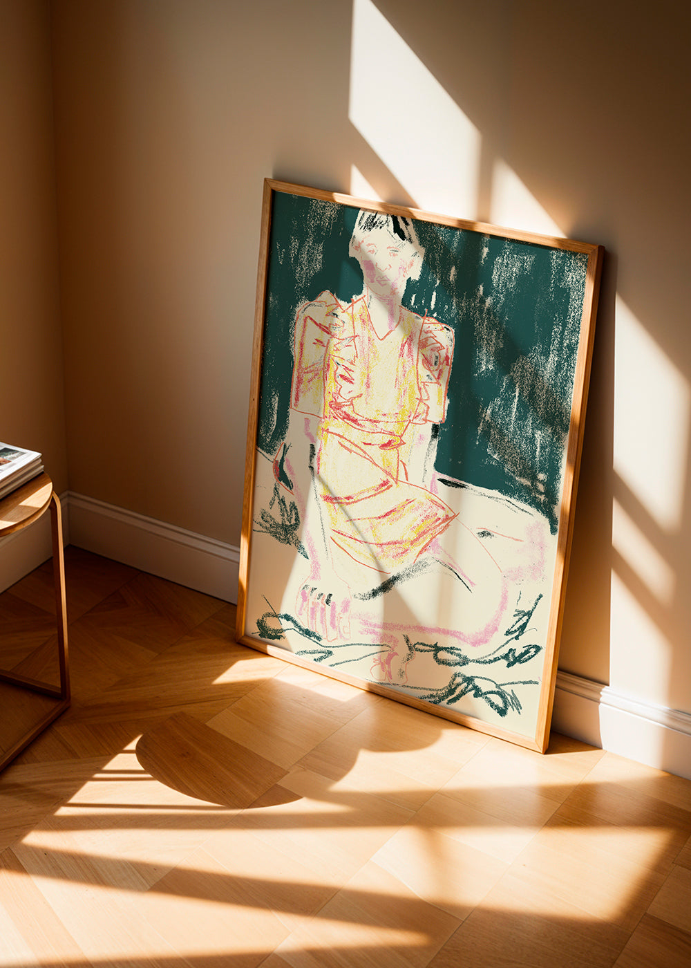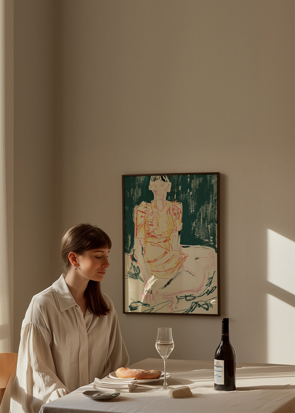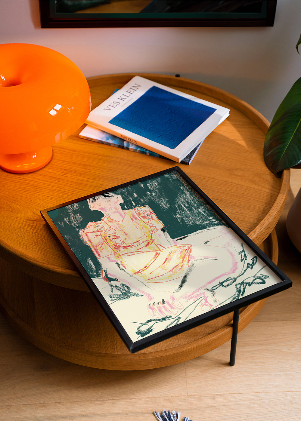 Un póster con inspiración en nuestra colección de cuadros de mujeres, perteneciente a la colección de 1x, en tonos verdes, y de formato vertical. Una obra ideal para espacios que derrochan arte y creatividad. Nuestras ilustraciones son ideales para decorar espacios vacíos o aburridos. Deja tus paredes a cuadros.