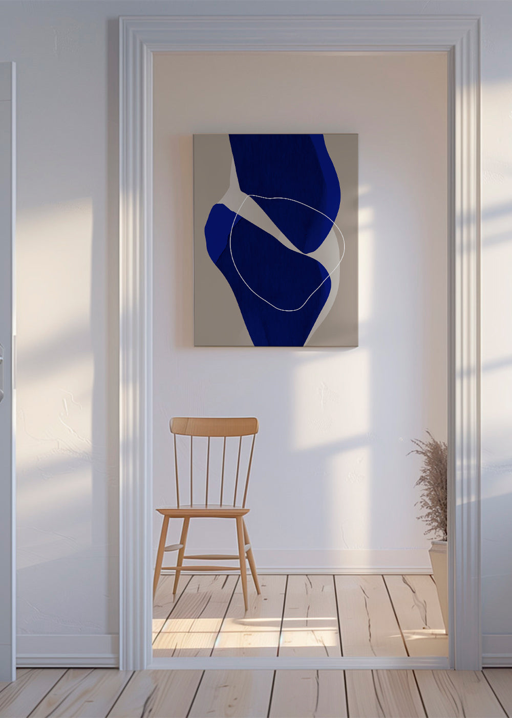 Bonita pieza de nuestra colección de cuadros de líneas, de la colección de Anna Mainz, con tonos azules, y de posición vertical. Si necesitas añadir originalidad y estilo a tu decoración, este diseño abstracto te ayudará a dar un toque vanguardista a las paredes de tu hogar. Déjate cautivar por el arte.