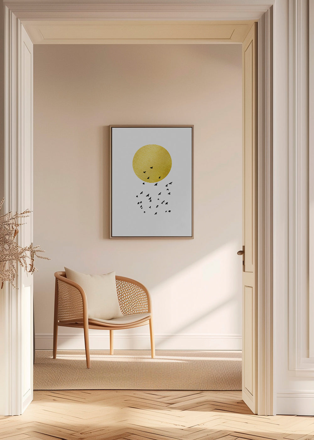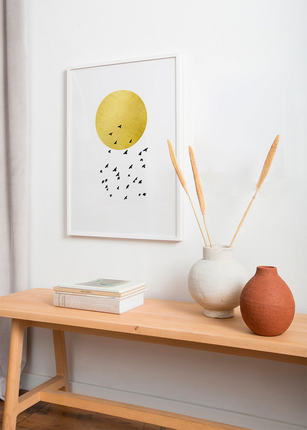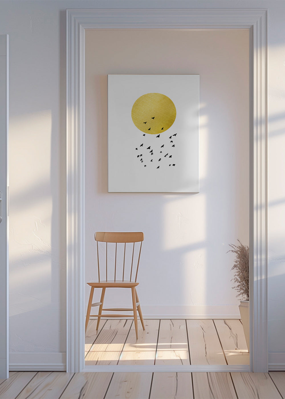 Un cuadro de nuestra categoría de cuadros de pájaros, de Bondecco, con tonalidades de colores dorados, y en formato vertical. La naturaleza es una de las mejores obras de arte que existen… ¿no crees? Combina nuestros cuadros de paisajes para conseguir una decoración que transmita frescura. Llena tus paredes de arte.