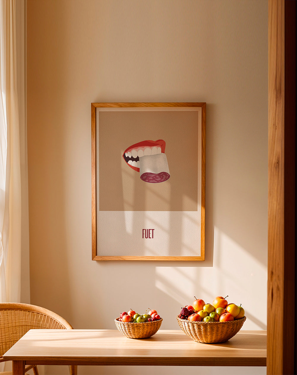 Un cuadro de nuestra selección de cuadros de comida y bebida, de la mano de Nerea Ramírez, en tonalidades de colores marrones, y orientada en vertical. Con esta lámina en tu cocina, cocinar ya no será un problema. Estarás deseando coger los fogones, aunque solo sea para verla. Combínala con otras láminas de cocina. Este es el cuadro que tu pared estaba buscando.