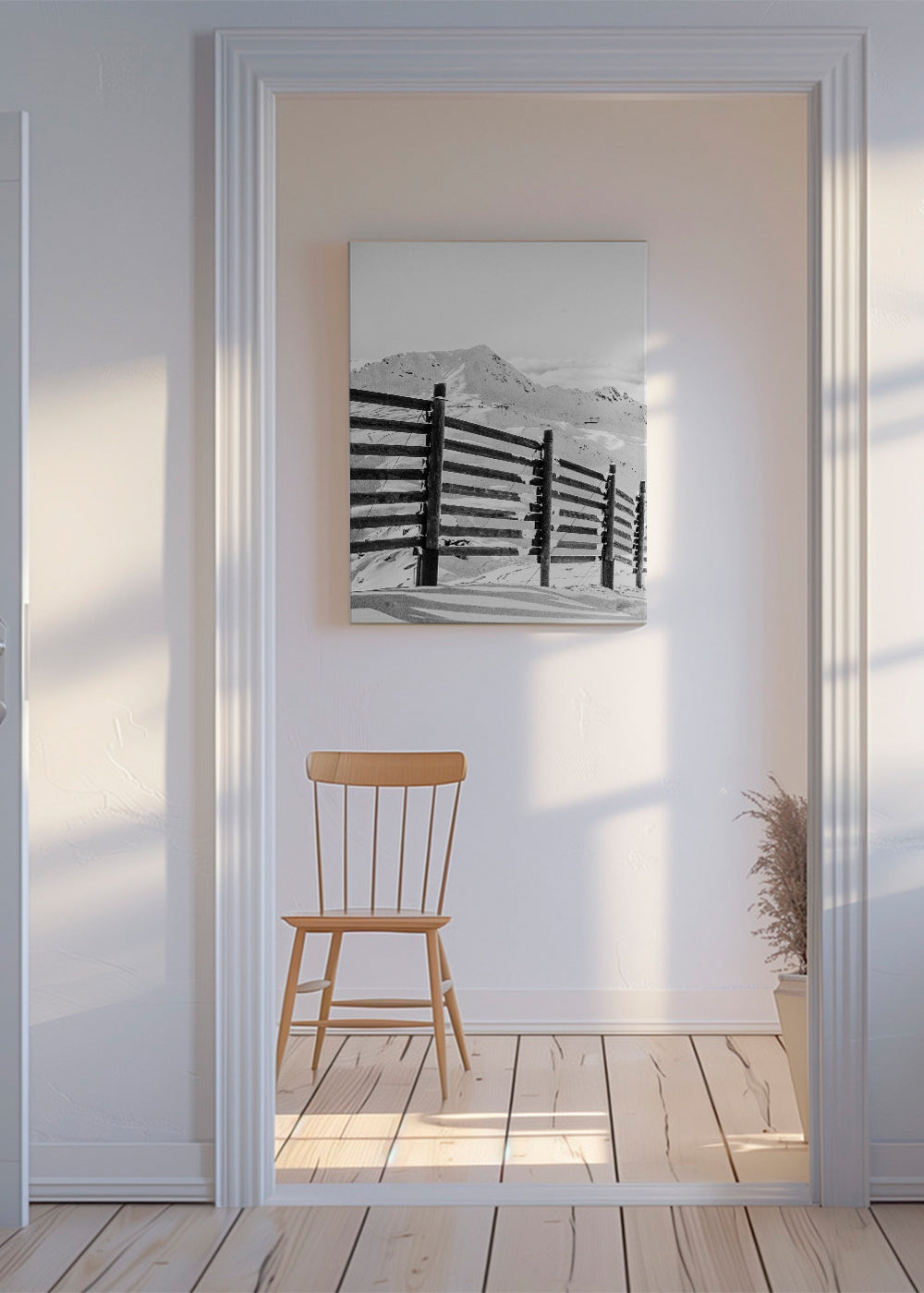 Un póster de nuestra selección de cuadros de nieve y paisajes nevados, perteneciente a la colección de Victoria Frost, con matices de colores negros, y de posición vertical. La decoración con paisajes aporta un aire fresco a cualquier interior. Un nuevo look en tus paredes puede dar un aire nuevo a toda la decoración.