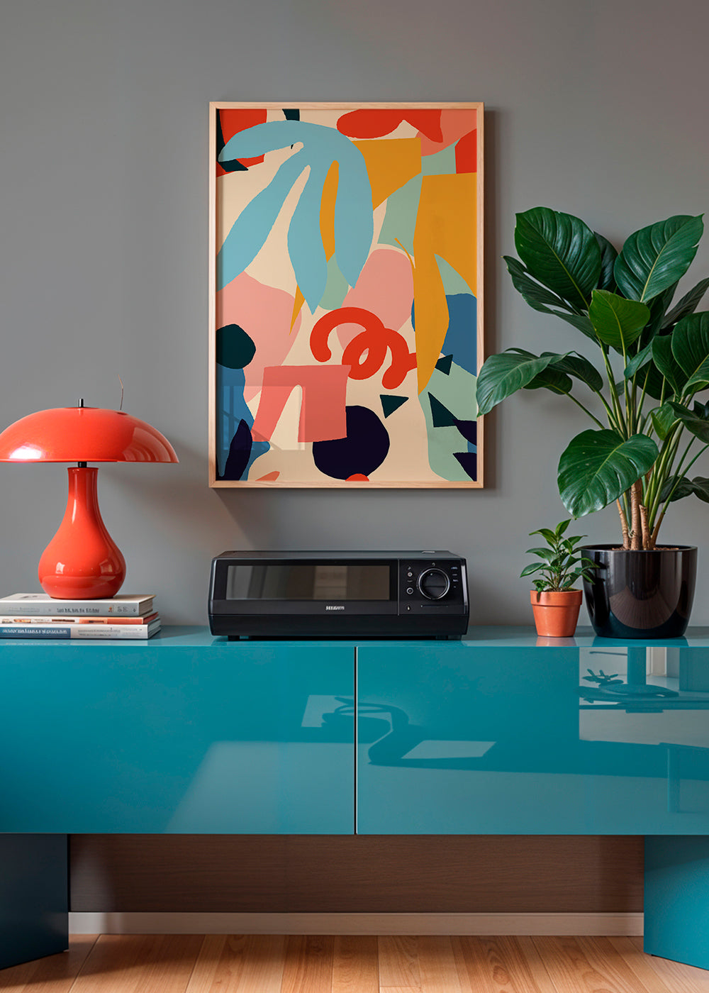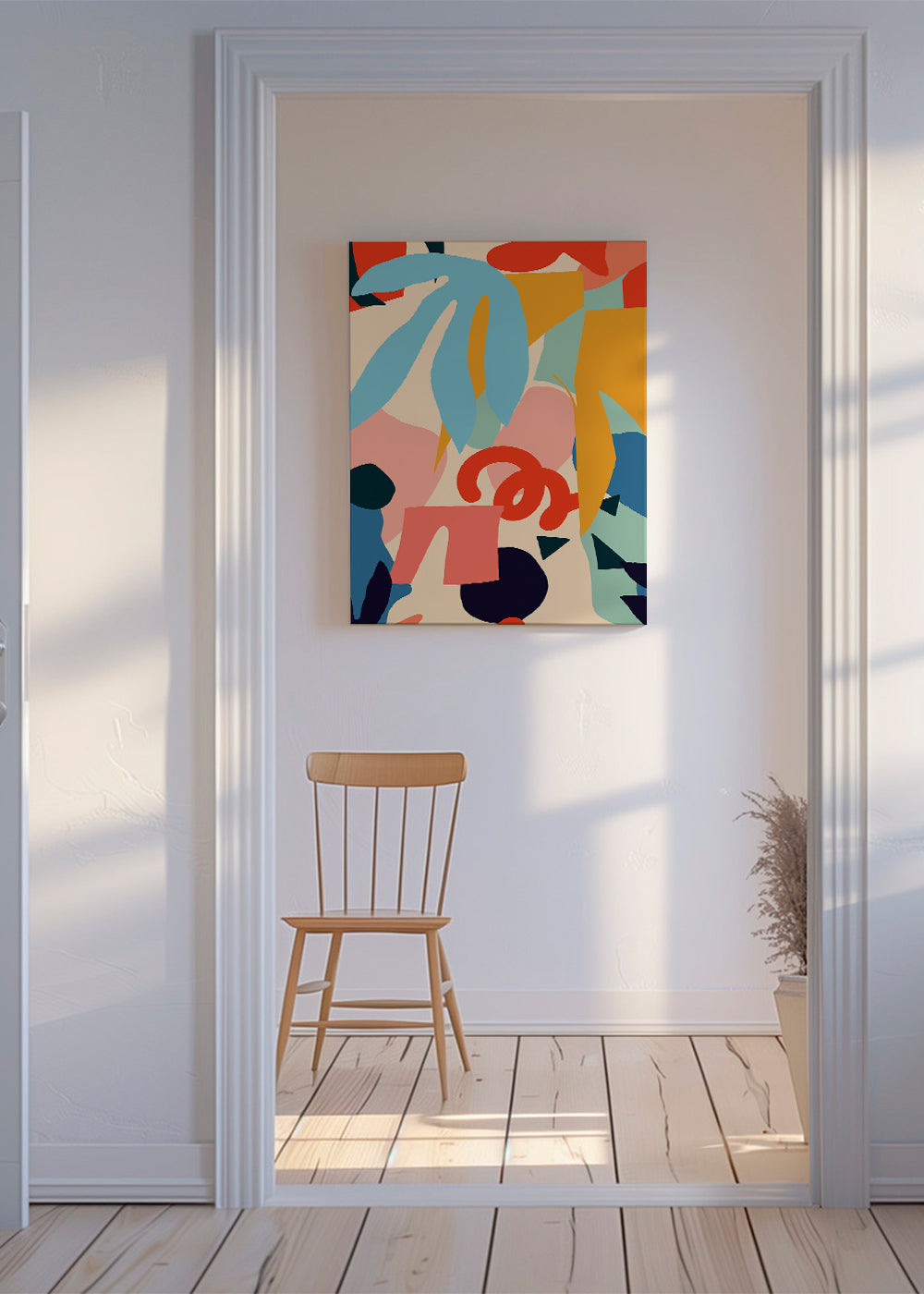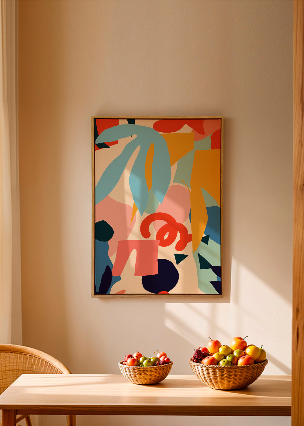 Esta obra de nuestra colección de cuadros de palmeras, concebida por Juline Lobão, con matices de tonos multicolor, y en formato vertical. ¿Quién dice que es difícil decorar la cocina? Añade estilo a las paredes de tu cocina con esta lámina. Construye tu rincón favorito.