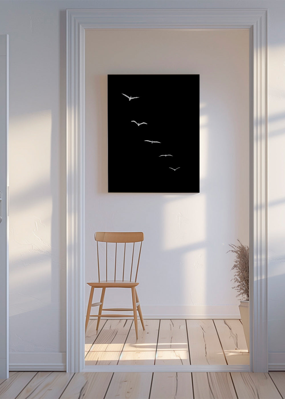 Un cuadro de la serie de cuadros de pájaros, de Kubistika, en tonos negros, y de posición vertical. Se trata de una obra ideal para los amantes de los animales. Combínala con otros cuadros de animales para crear una composición maravillosa. Dale un toque artístico a tu decoración.