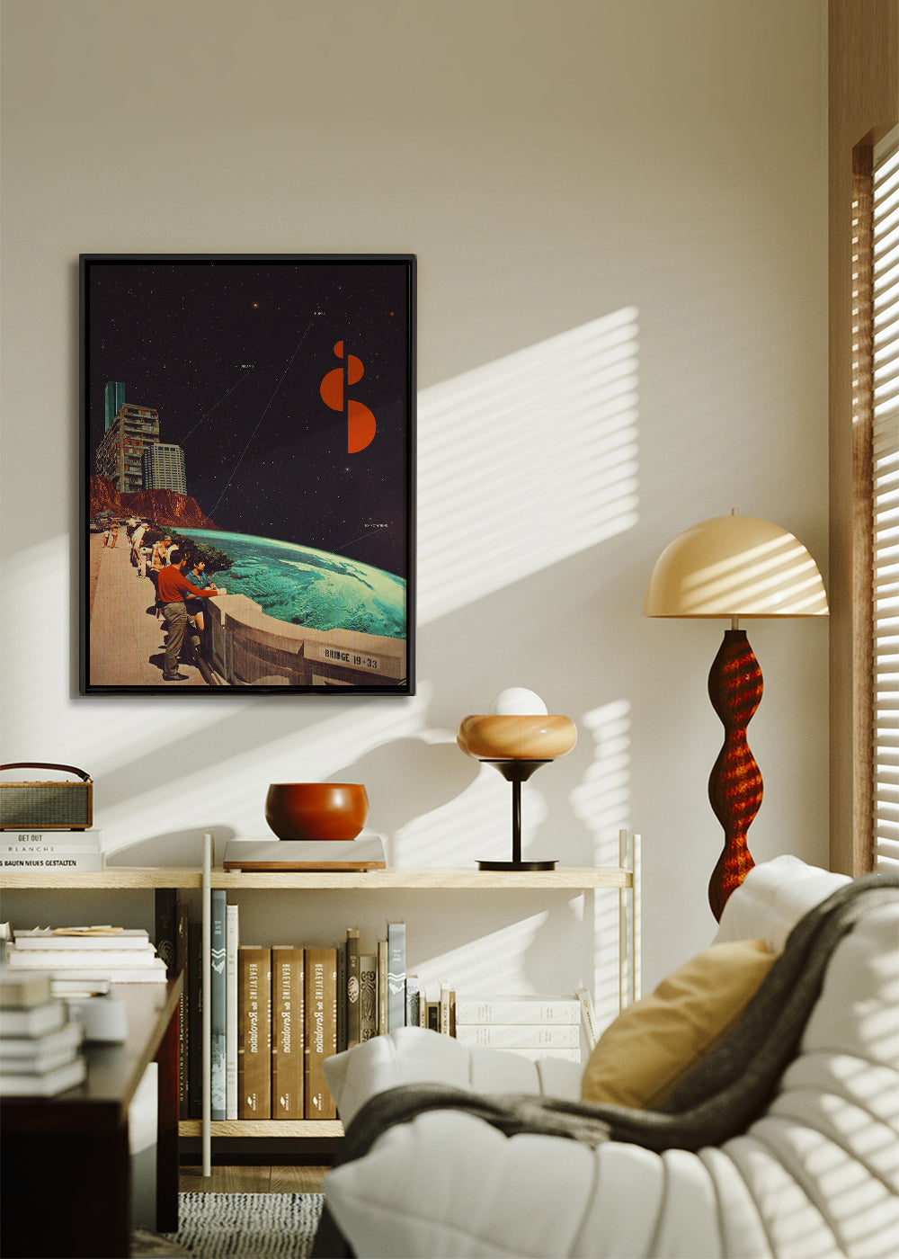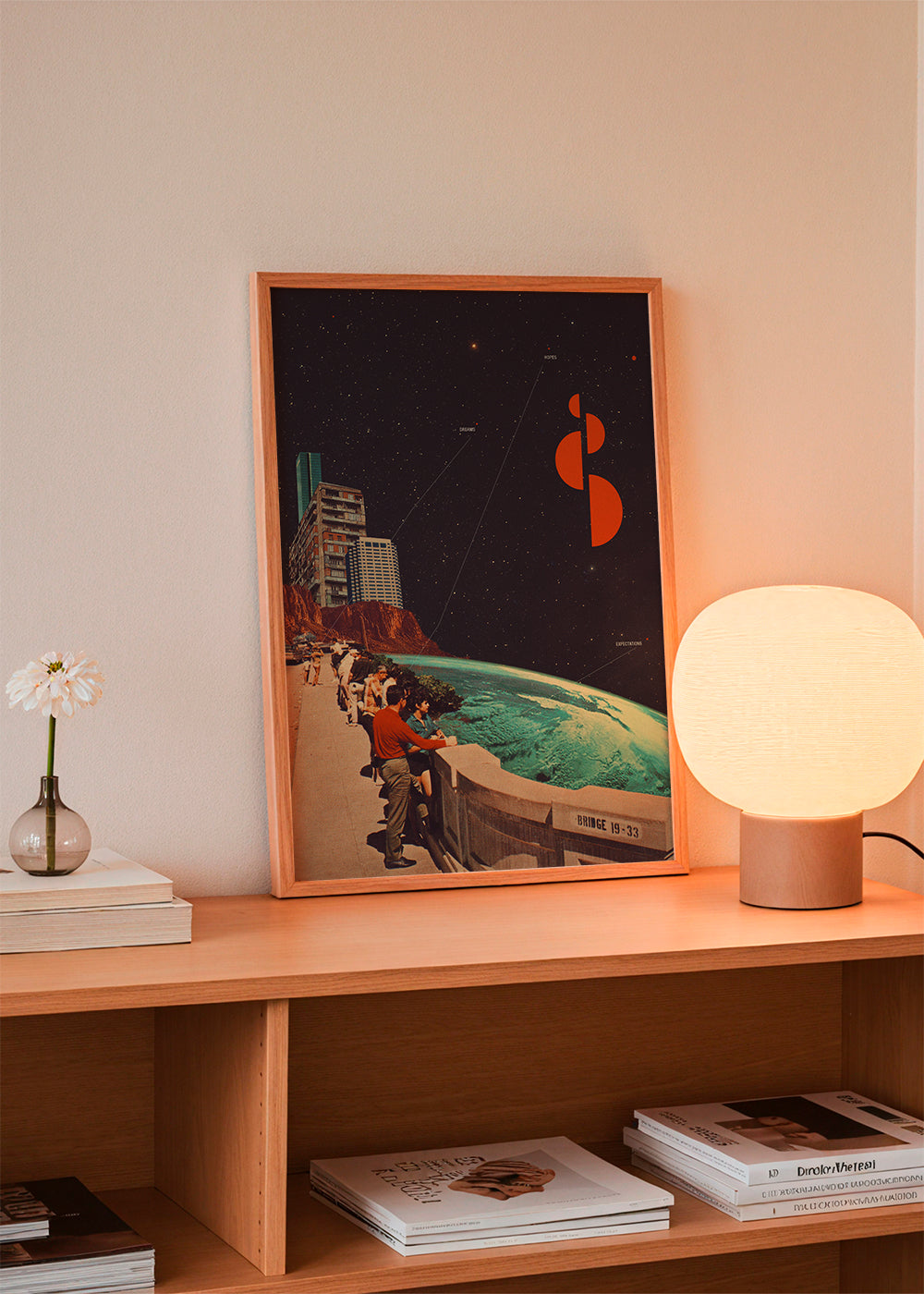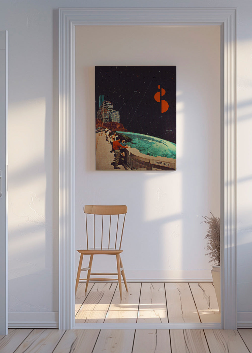 Este diseño de nuestra colección de cuadros de planetas, hecha por Frank Moth, con toques azules, y ideal para poner en posición vertical. Si estás buscando un elemento retro para añadir a la decoración, este diseño es ideal para ti. Combínalo con otros posters vintage para conseguir un estilo súper original. Un toque moderno para tu hogar.