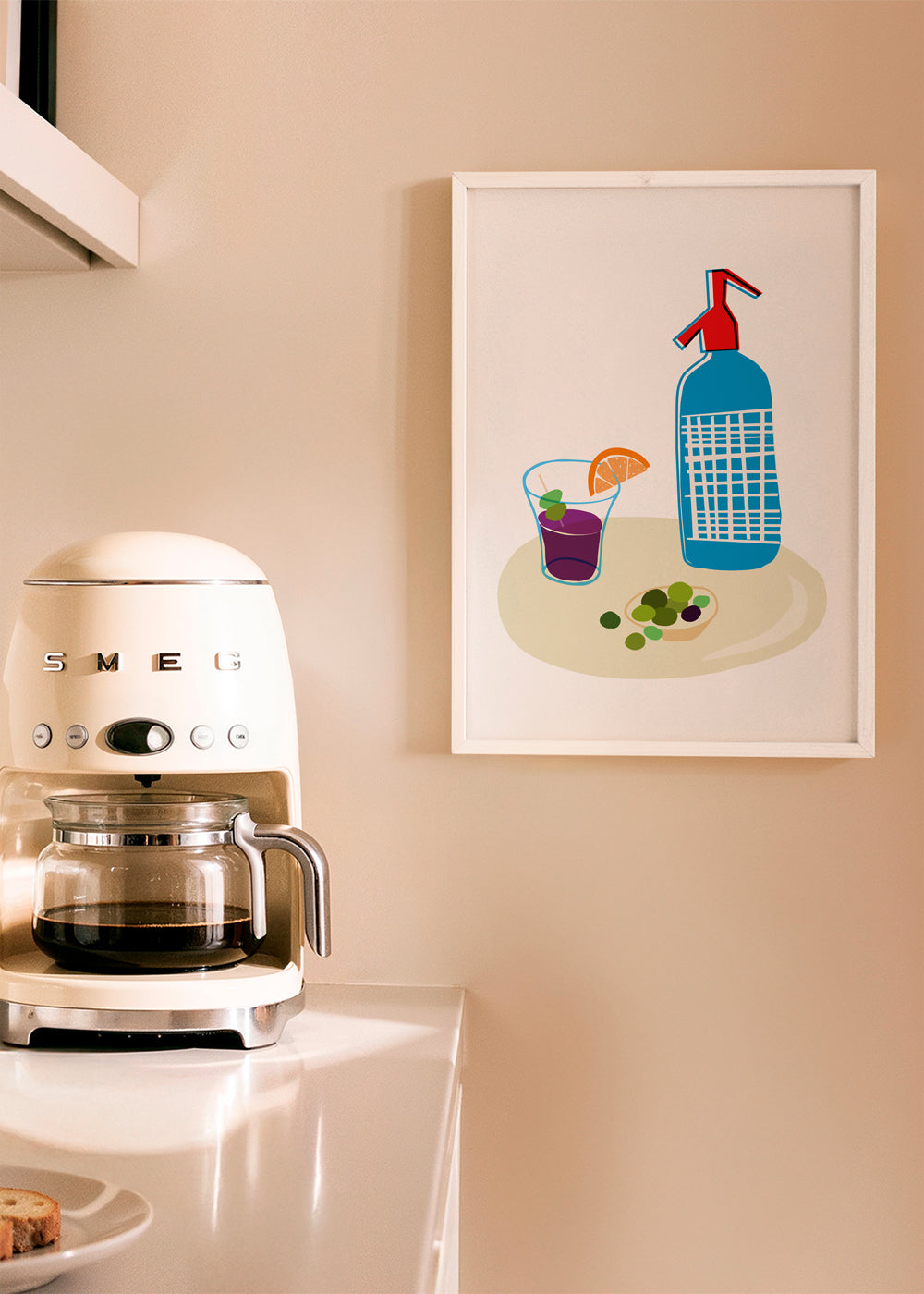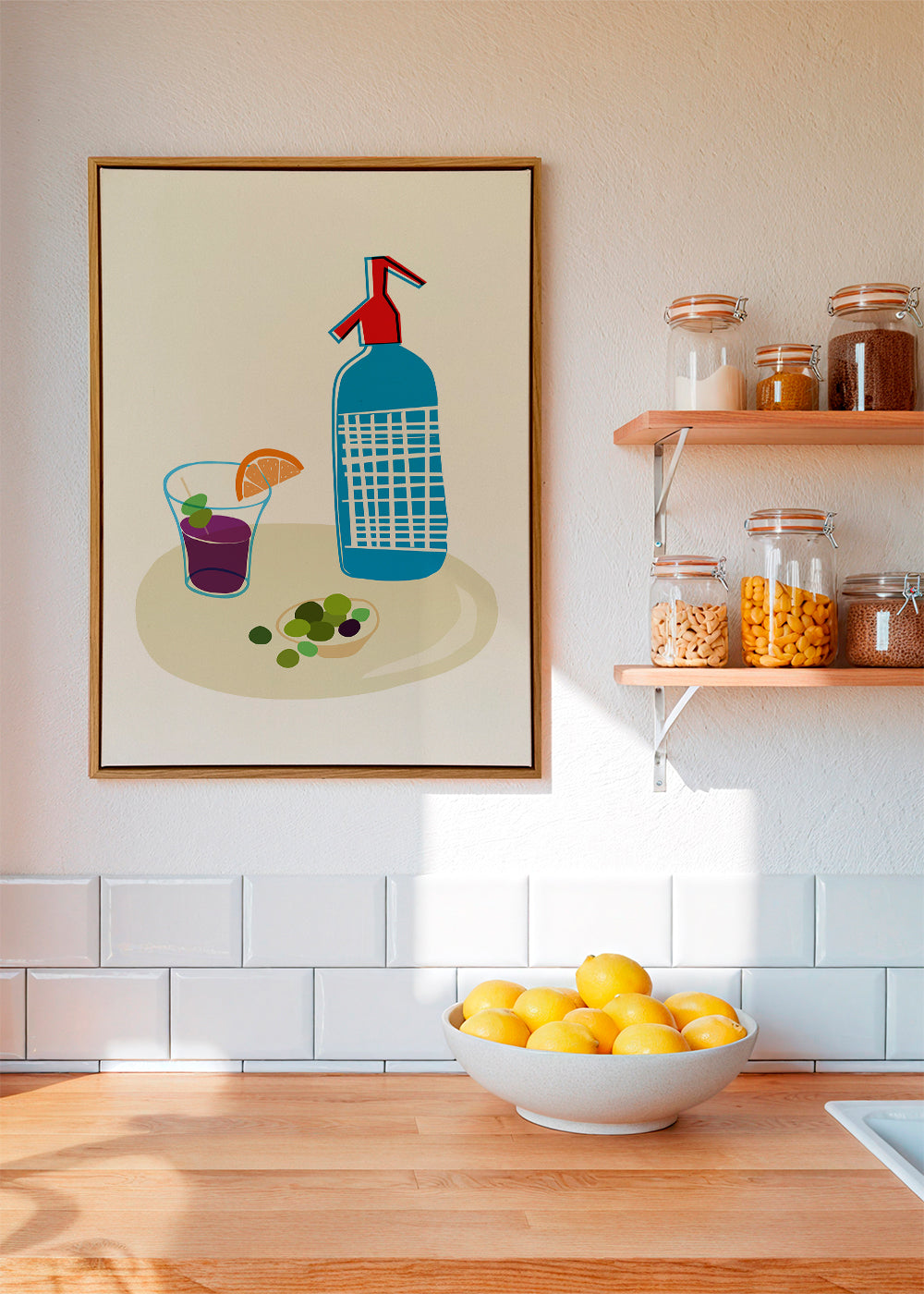 Esta obra perteneciente a la categoría de cuadros de licores y cocktails, del artista Nouveau Prints, con pigmentos grises, y orientada en vertical. Se trata de una obra ideal para decorar la cocina de tu hogar. Deja que el arte inunde tu hogar.