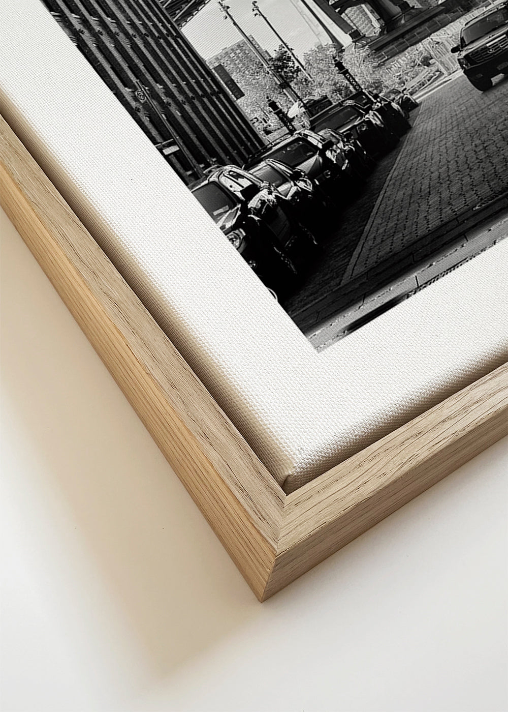 Si seleccionas la opción passepartout, añadiremos el recuadro de cartón blanco al marco, y reduciremos el diseño de la obra. Por ejemplo, si seleccionas una lámina de tamaño 50x70, con marco de color roble y passepartout, reduciremos el diseño de la lámina al tamaño anterior (40x50cm). De esta manera, se adaptará perfectamente a la ventana interior del passepartout.