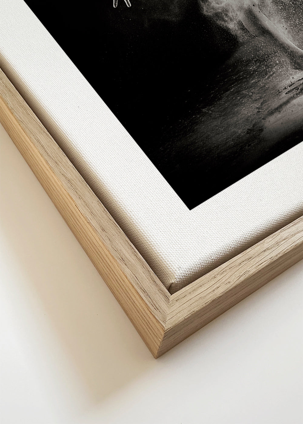Si seleccionas la opción passepartout, añadiremos el recuadro de cartón blanco al marco, y reduciremos el diseño de la obra. Por ejemplo, si seleccionas una lámina de tamaño 50x70, con marco de color roble y passepartout, reduciremos el diseño de la lámina al tamaño anterior (40x50cm). De esta manera, se adaptará perfectamente a la ventana interior del passepartout.