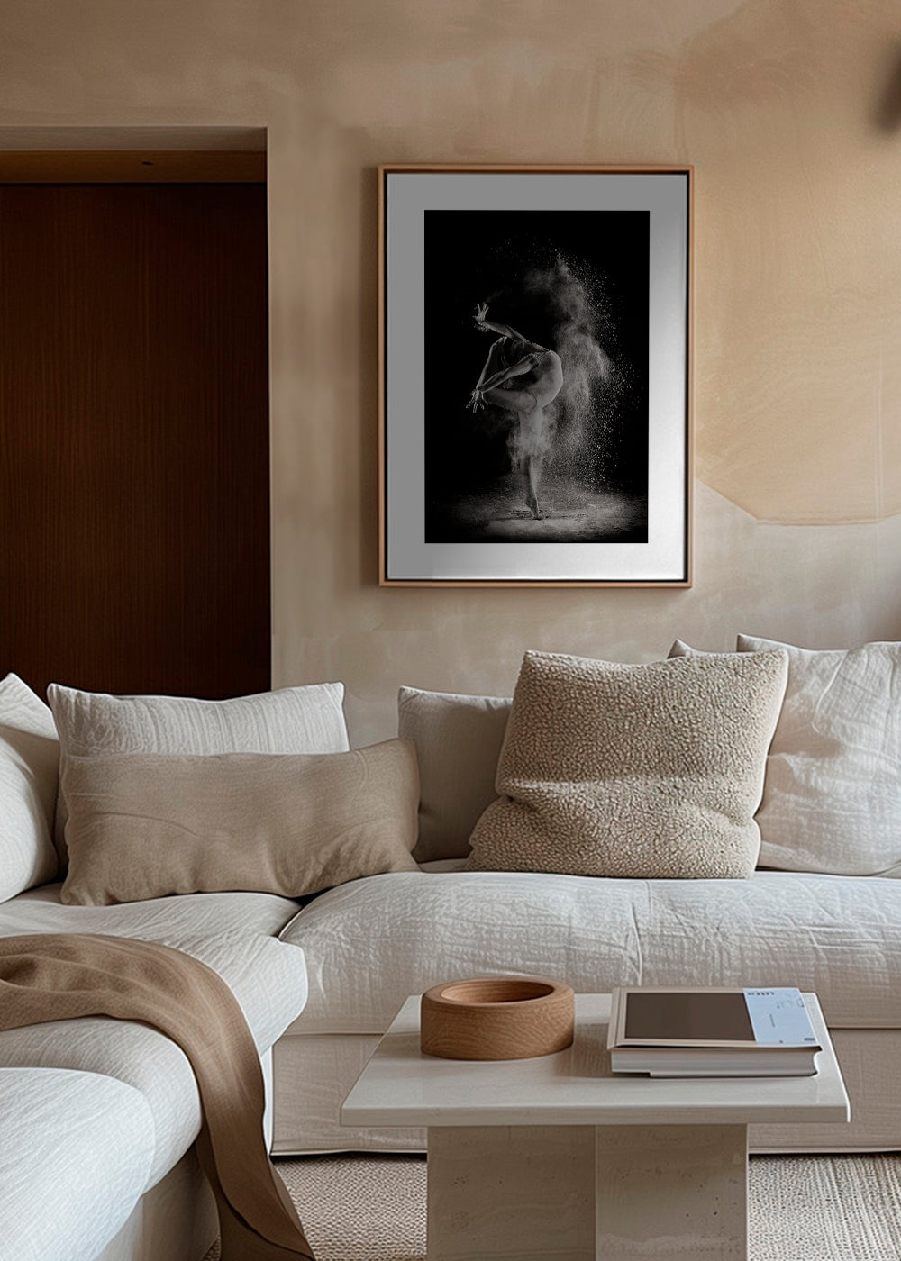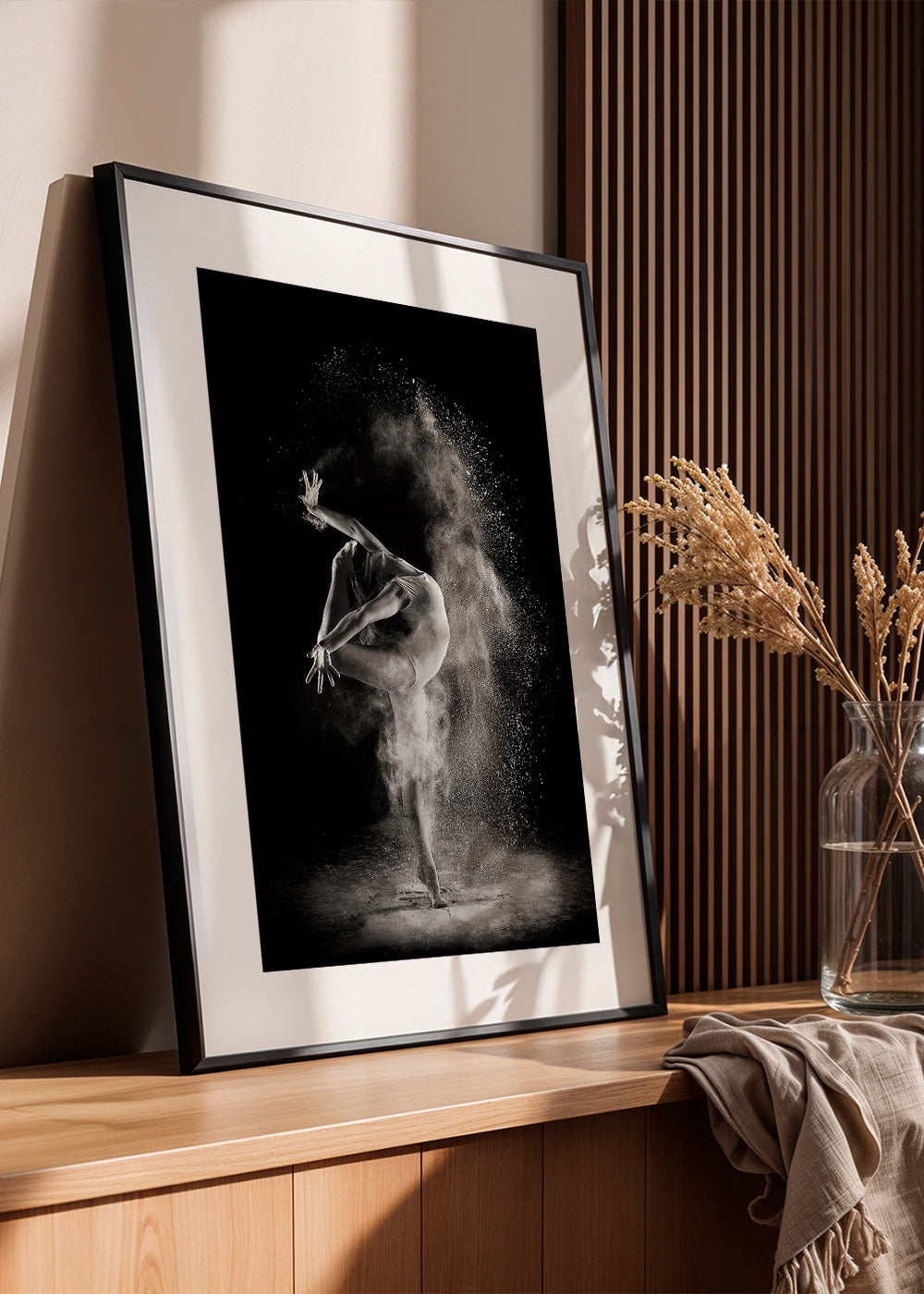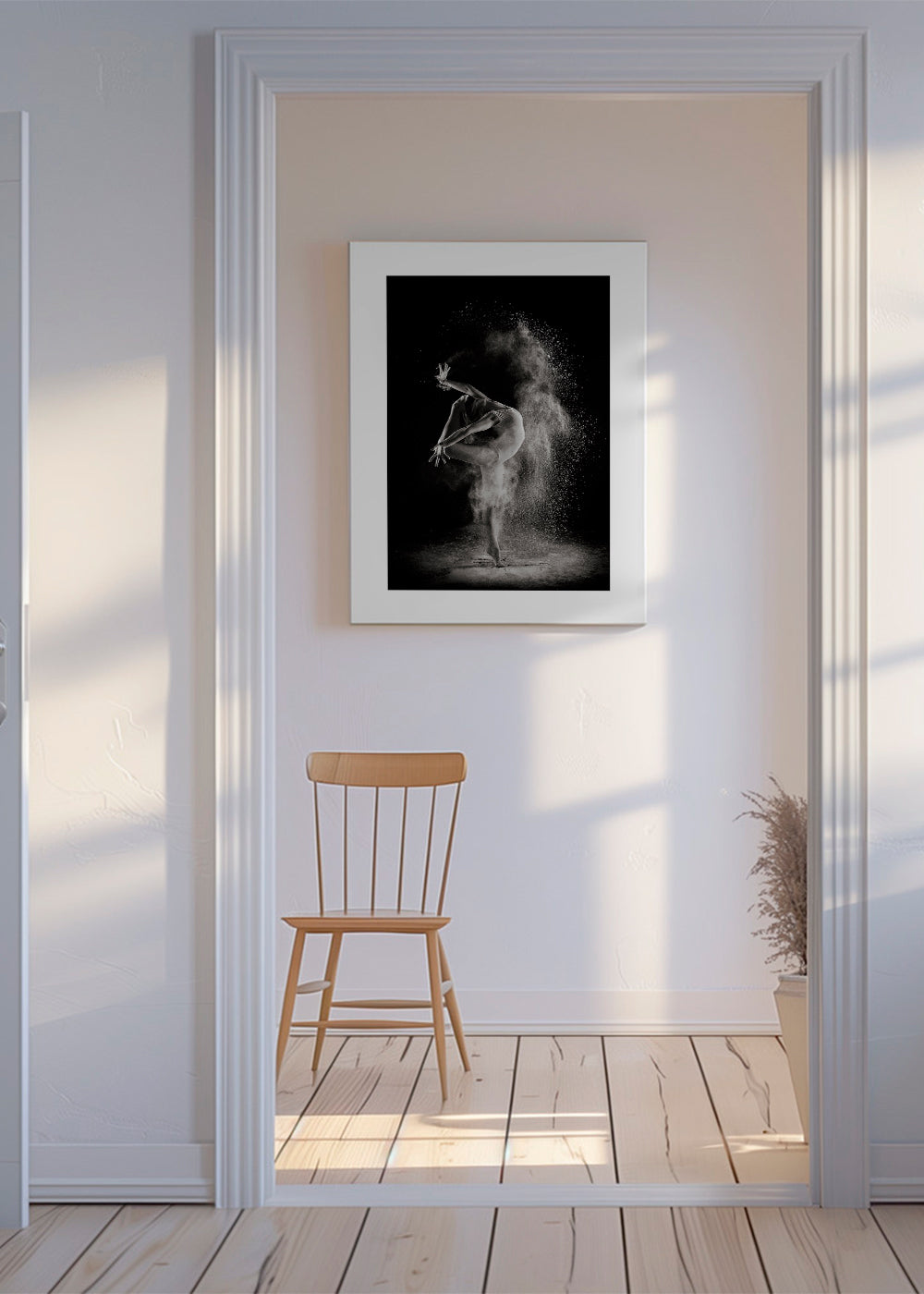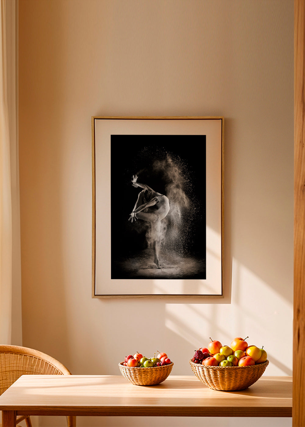 Un cuadro de nuestra categoría de cuadros de danza y baile, con tonalidades de colores monocromáticos, y de formato vertical. La fotografía es un arte que cambia cualquier decoración. Añadir cuadros con fotografías al interiorismo moderniza cualquier estancia. Una pared vacía es una pared triste, pero con unos cuadros le sacaremos una sonrisa. El diseño incluye un margen blanco que añade contraste a la obra.
