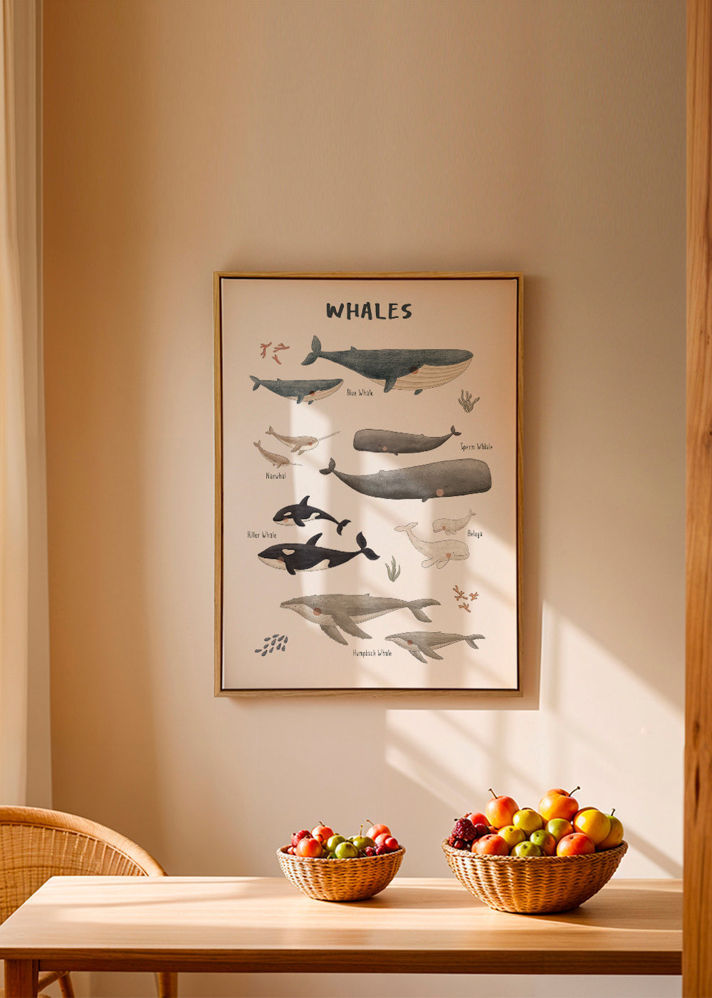 Cuadro infantil Ballenas fondo blanco (inglés)