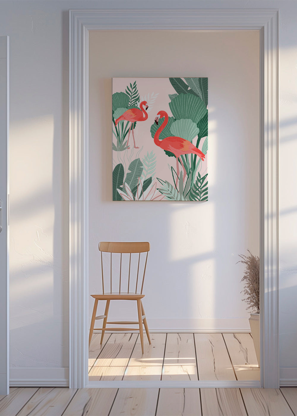 Una lámina del estilo de nuestros cuadros de flamencos, de la mano de Goed Blauw, con toques verdes, y para colgar en posición vertical. Se trata de una obra ideal para los amantes de los animales. Combínala con otros cuadros de animales para crear una composición maravillosa. Un hogar se viste por las paredes.
