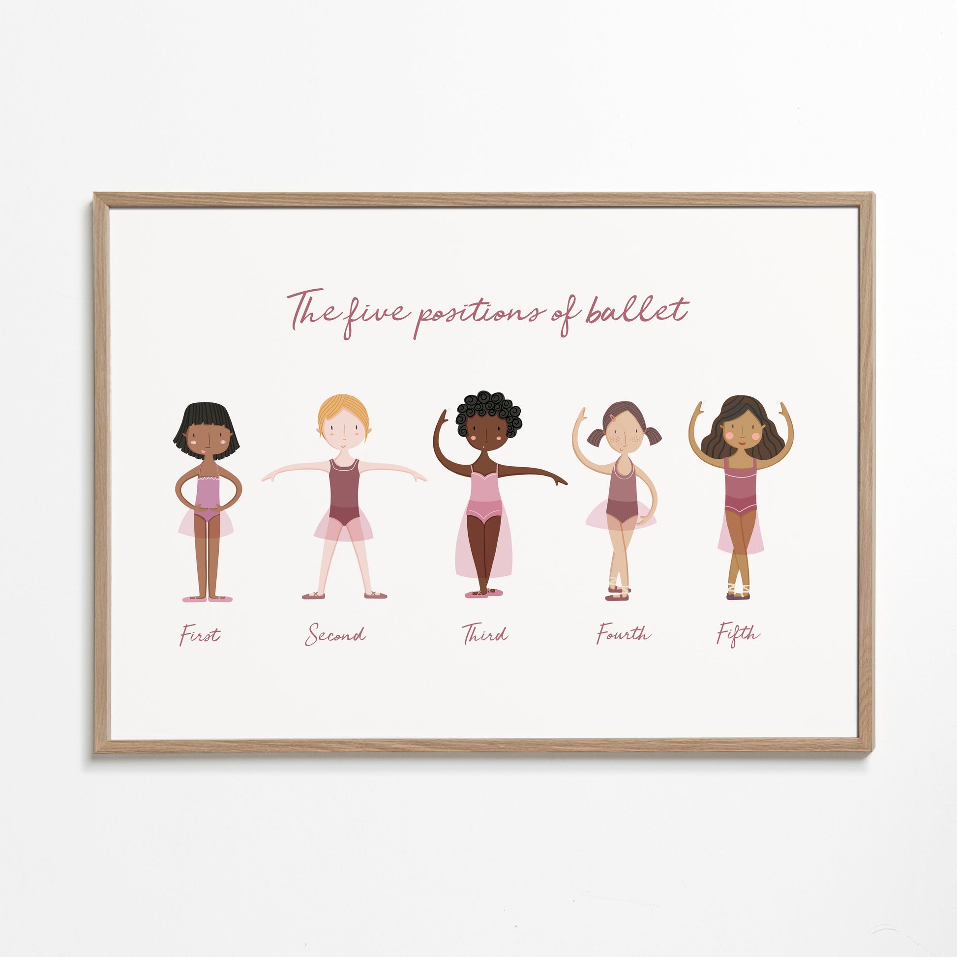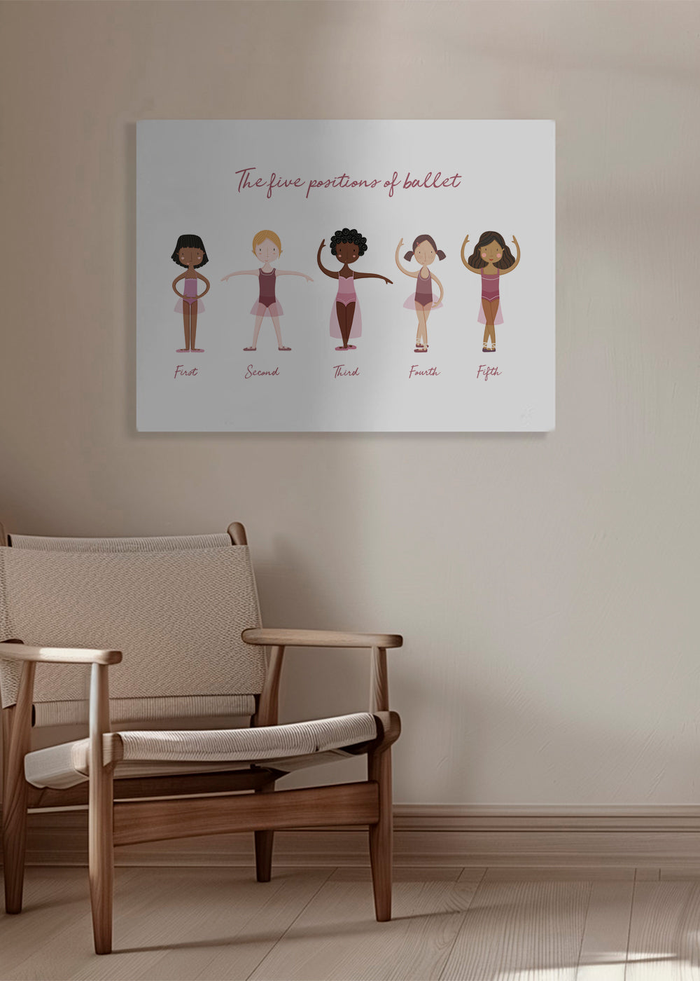 Cuadro infantil Las 5 posiciones de ballet (lila)