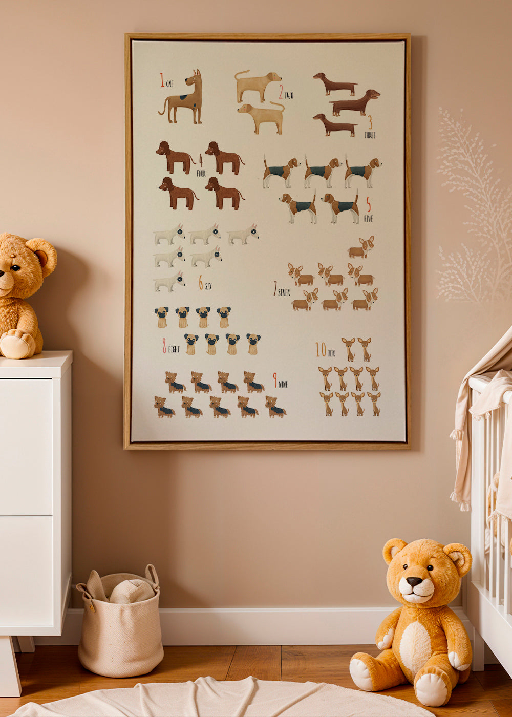 Cuadro infantil Numeros del 1 al 10 (perros)