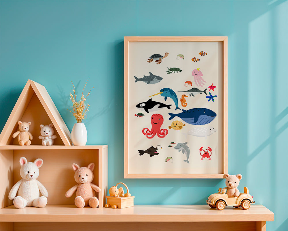 - Enmarcado gratuito: al escoger un marco, recibirás tus cuadros enmarcados y listos para colgar.