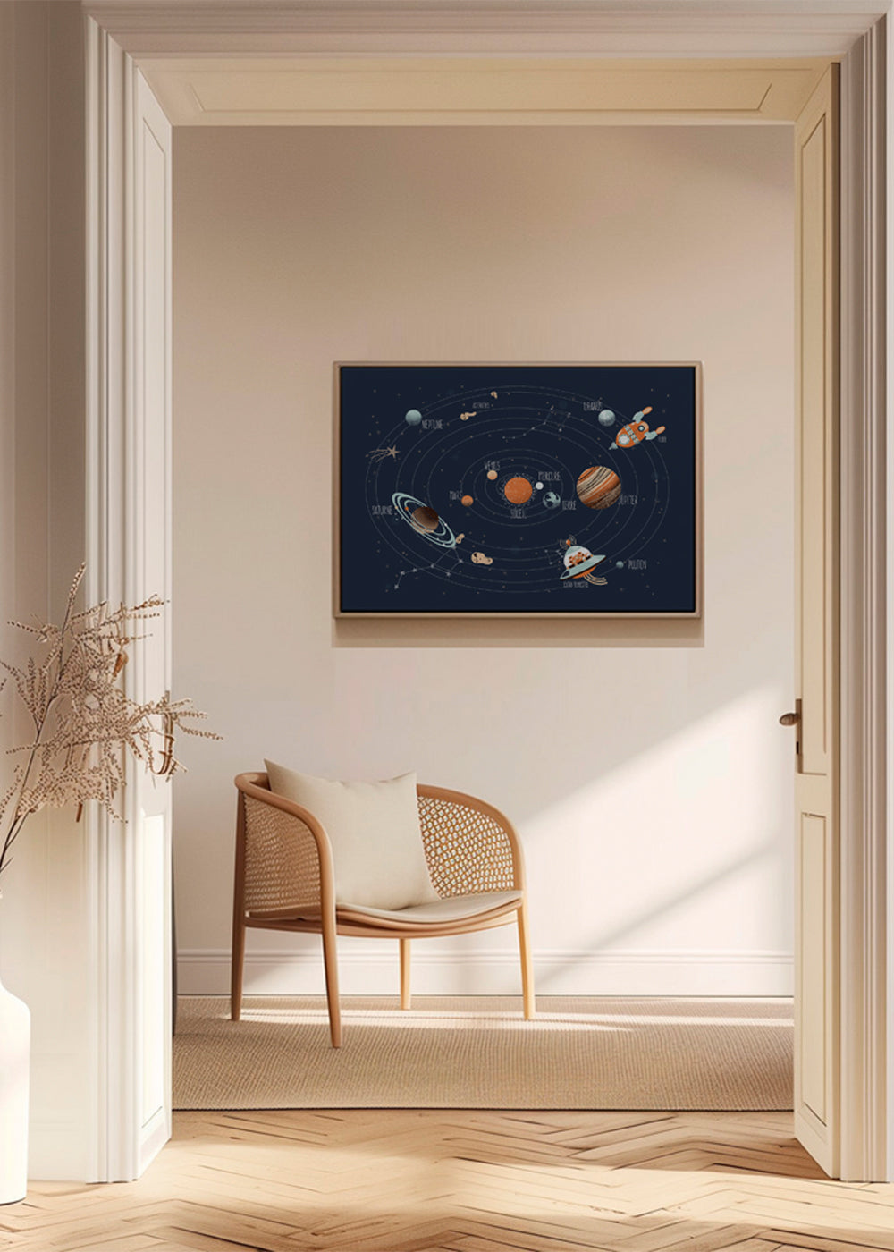 Este diseño de la serie de cuadros de cohetes, de la colección de Kanzilue, con tonos multicolor, y de formato horizontal. Se trata de una ilustración de estilo sencillo y limpio, combínala con otras ilustraciones para obtener una composición artística. Deja tus paredes a cuadros.