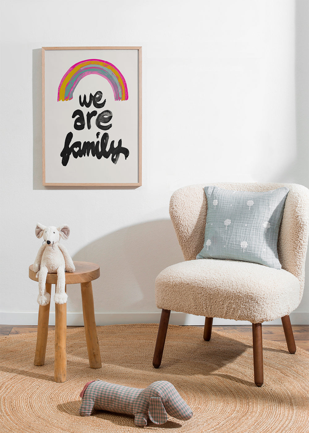 Bonita lámina de nuestra categoría de cuadros de familia, de la mano de Treechild, en tonos multicolor, y de posición vertical. Nuestras láminas para niños ayudan a crear habitaciones infantiles acogedoras y divertidas. Un toque moderno para tu hogar.