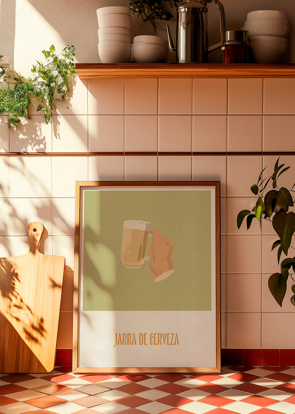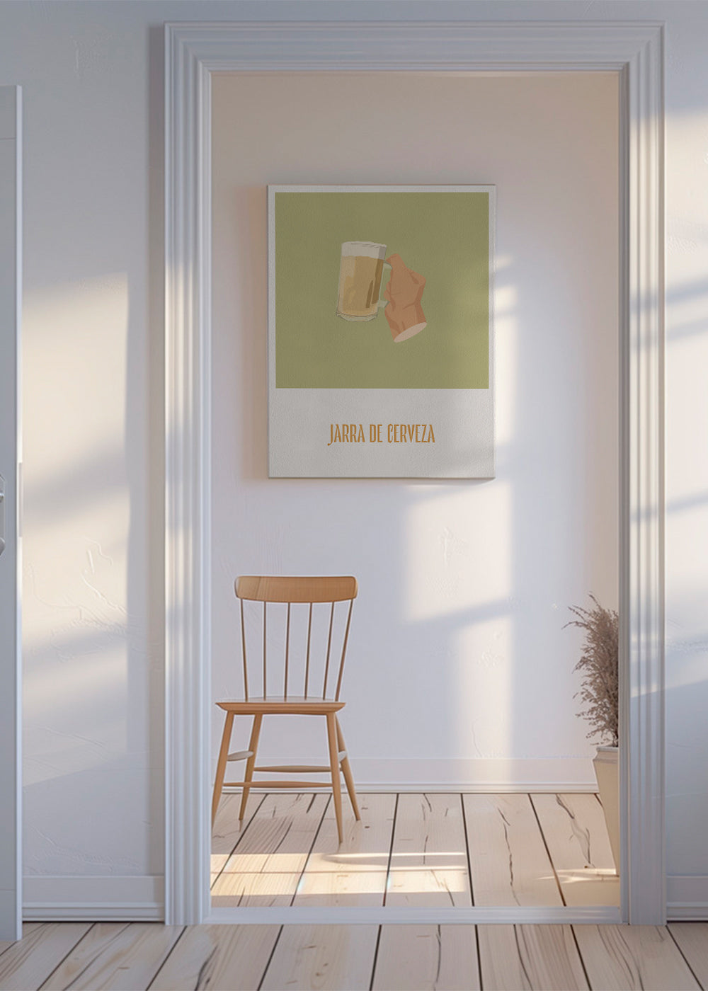 Un cuadro con inspiración en nuestra colección de cuadros de cerveza, perteneciente a la colección de Nerea Ramírez, con tonos verdes, y orientada en vertical. Los cuadros para cocina son un elemento decoración perfecto para hacer de este espacio un lugar más acogedor. Consigue una decoración con mucho arte.