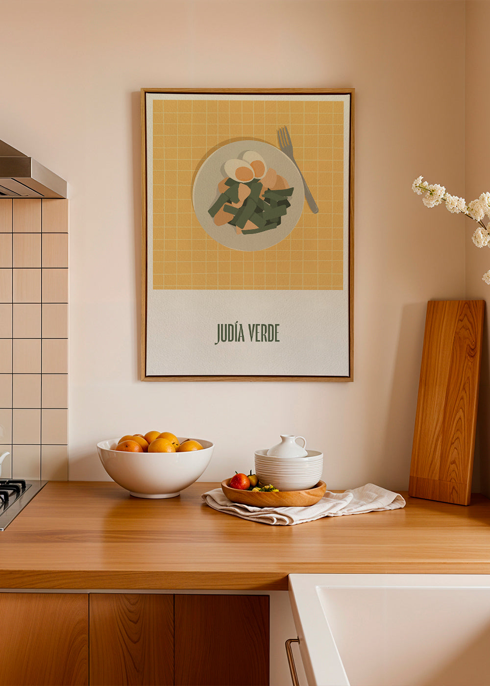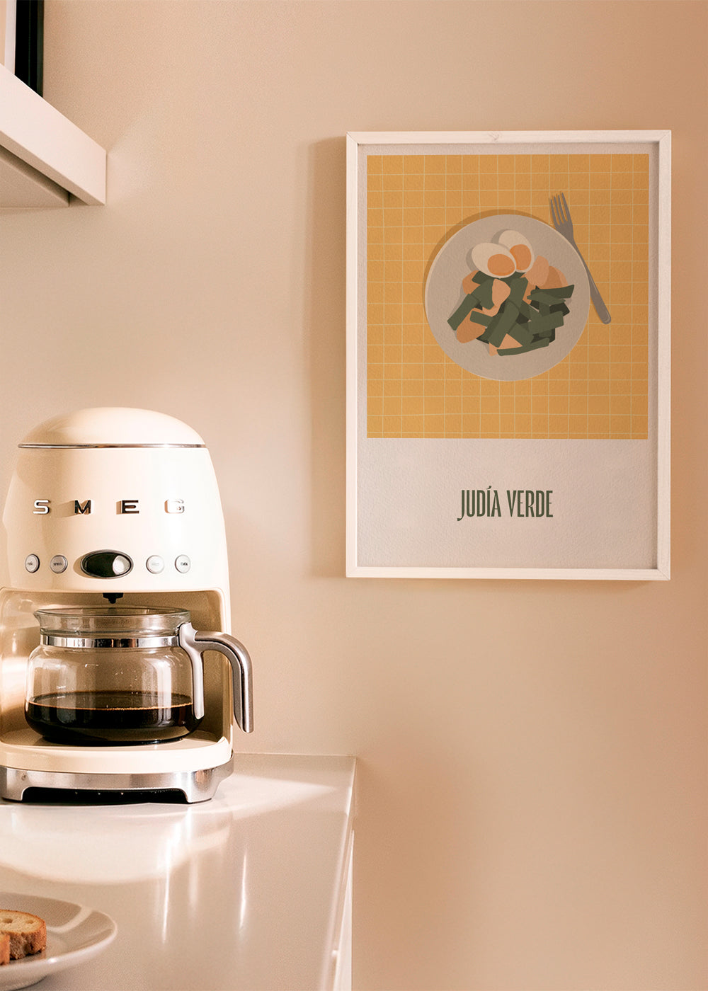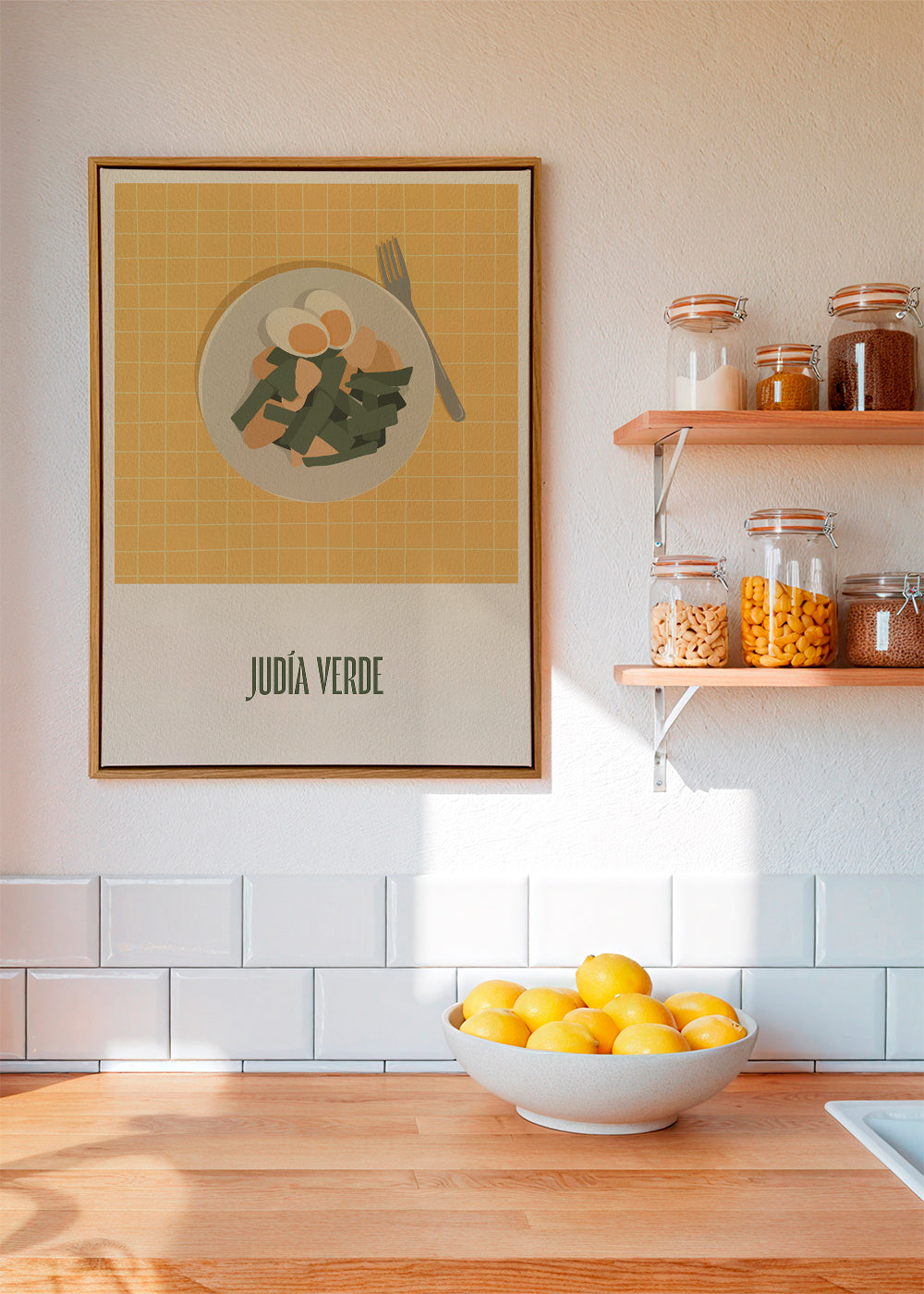 Esta lámina de nuestro conjunto de cuadros de comida y bebida, de la mano de Nerea Ramírez, en tonos amarillos, y con orientación vertical. ¿Quién dice que es difícil decorar la cocina? Añade estilo a las paredes de tu cocina con esta lámina. Una pared vacía es un lienzo que debe ser pintado.