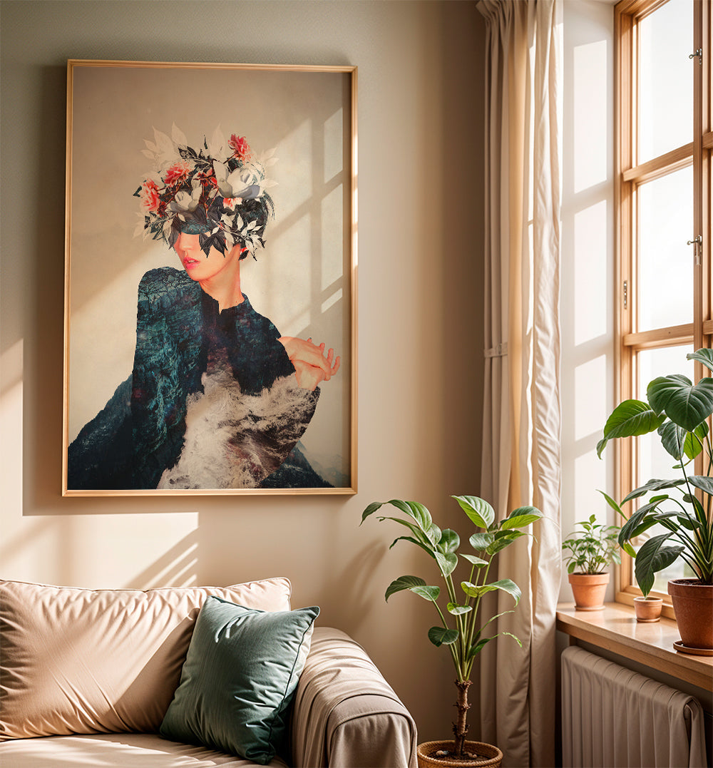 Un póster de la serie de cuadros de mujeres, original de Frank Moth, con toques azules, y para colgar en posición vertical. Una obra de estilo retro ideal para una decoración con toques vintage. Consigue una decoración con mucho arte.