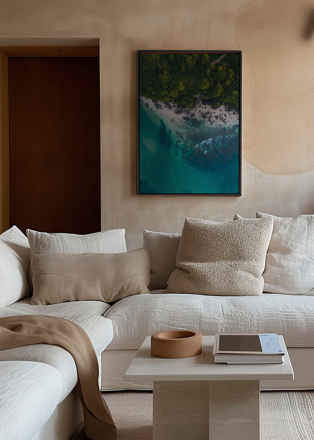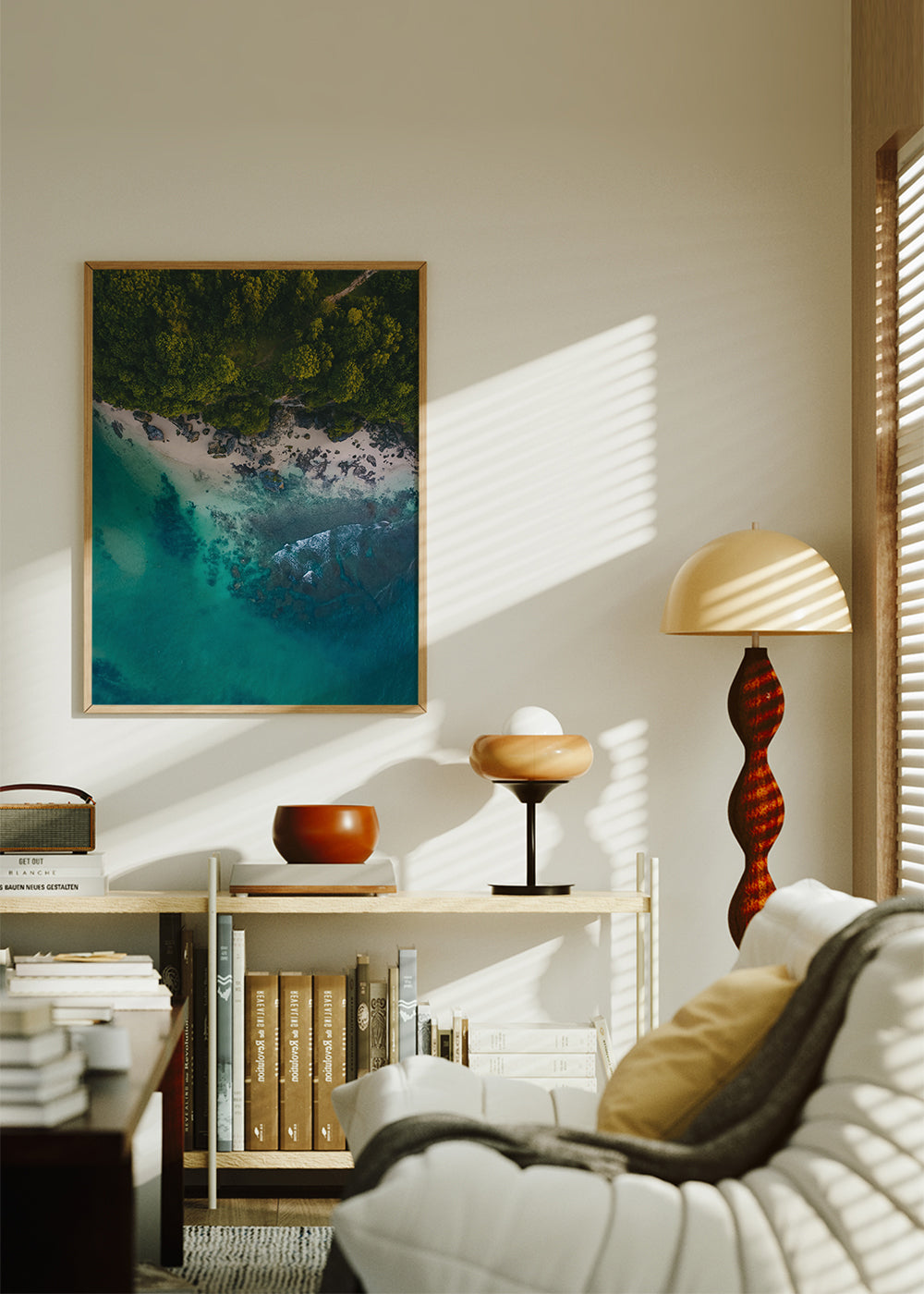 Bonito póster de nuestro repertorio de cuadros de viajes, en tonos azules, y de disposición vertical. La tranquilidad y libertad que transmiten los cuadros de paisajes es única. Deja que el arte inunde tu hogar.