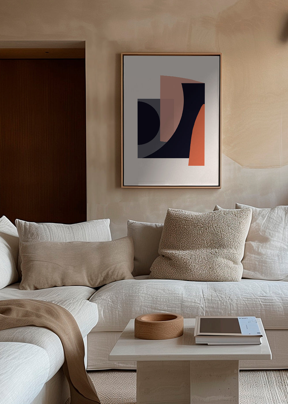 Un diseño de nuestro repertorio de cuadros geométricos, de la colección de Anna Mainz, de matices azules, y orientada en vertical. Esta obra con formas abstractas es ideal para combinar con cuadros geométricos y arte abstracto. Crea rincones especiales.