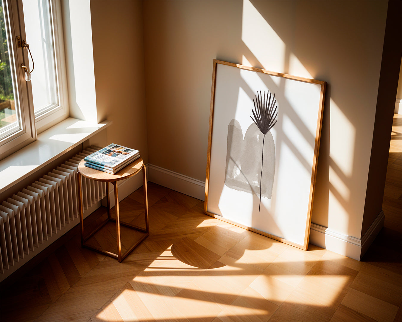- Enmarcado gratuito: al escoger un marco, recibirás tus cuadros enmarcados y listos para colgar.
