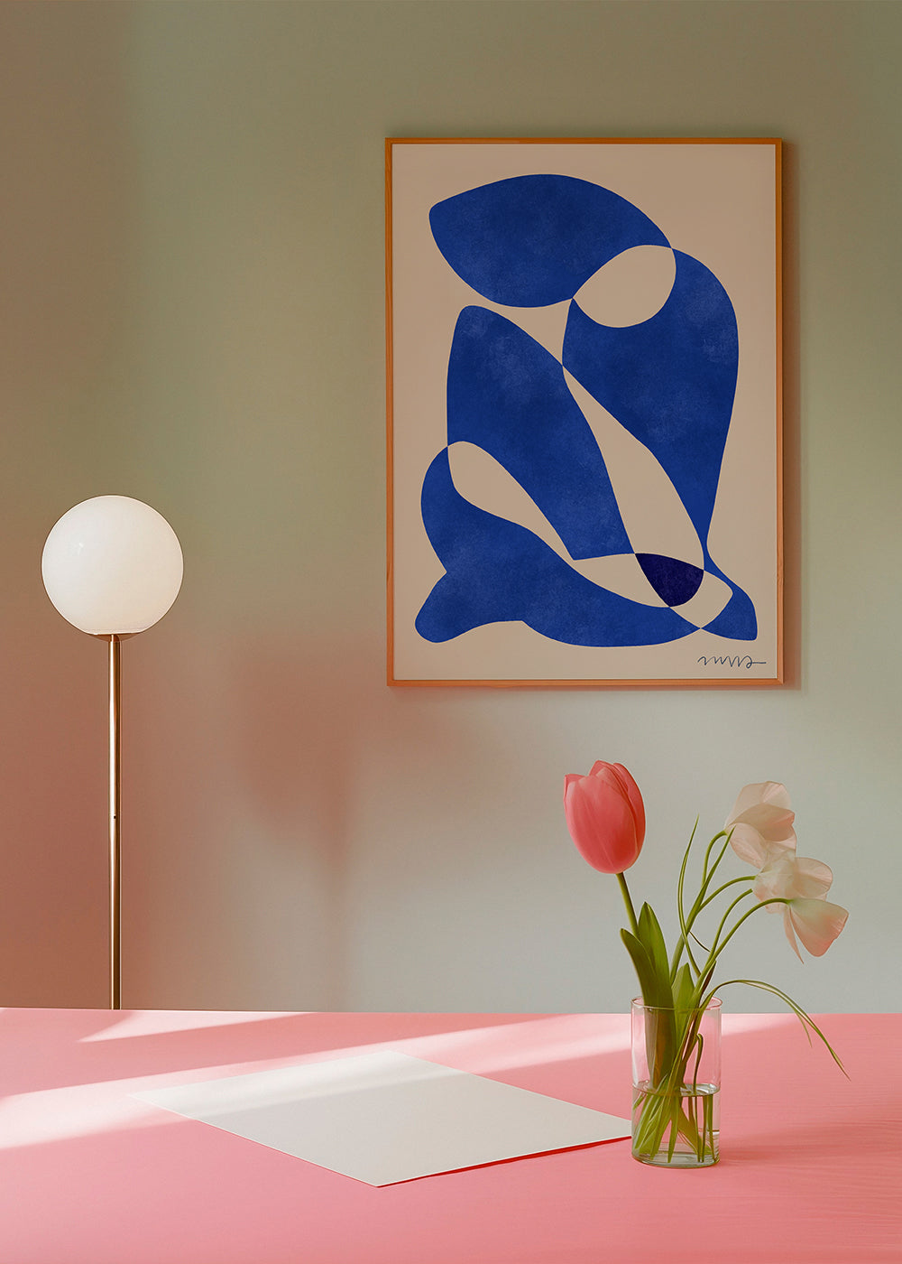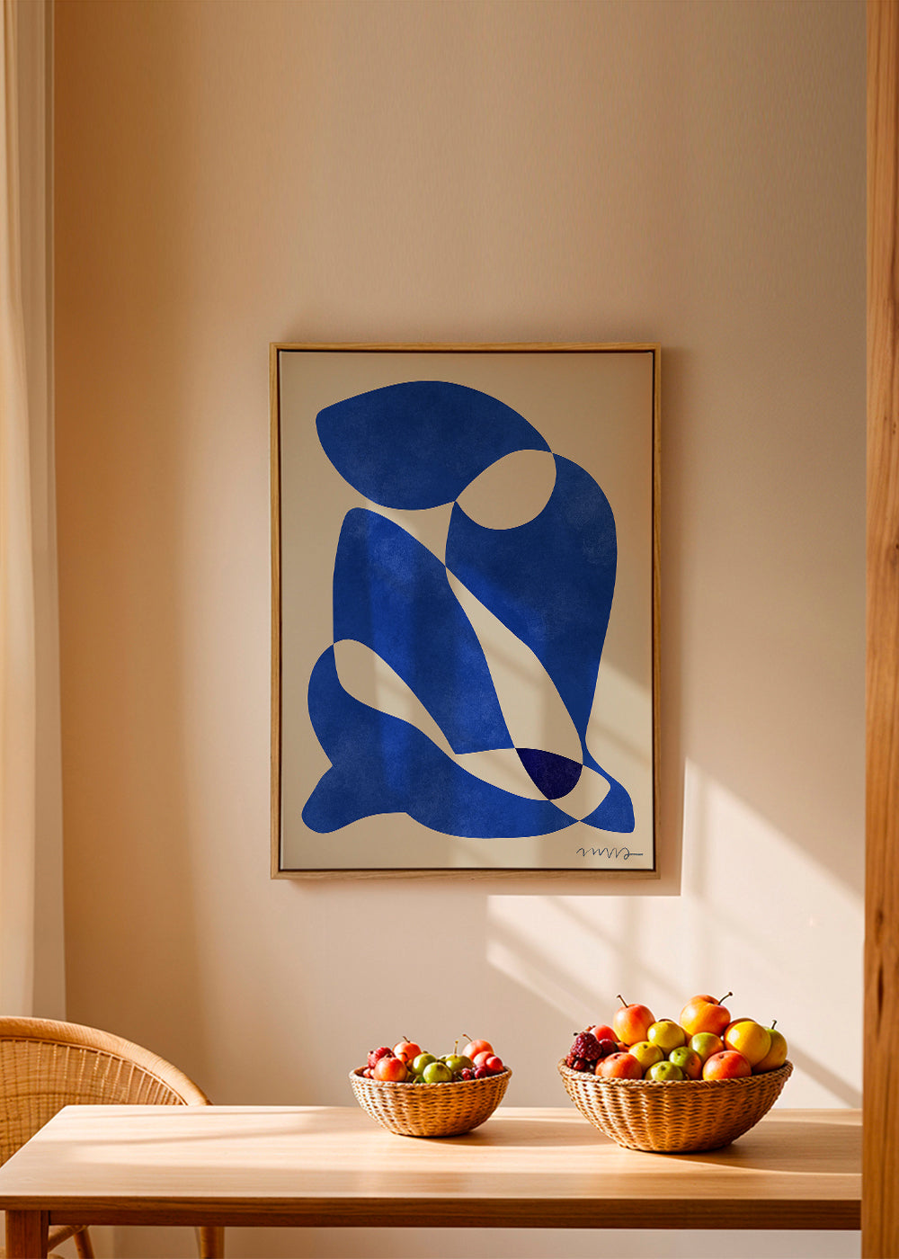 Este cuadro de nuestra colección de cuadros y láminas con ilustraciones, de Vaanzaal, con tonalidades de colores azules, y para colocar en posición vertical. Las láminas con ilustraciones son perfectas para llenar las paredes de creatividad. Una pared vacía es un lienzo que debe ser pintado.