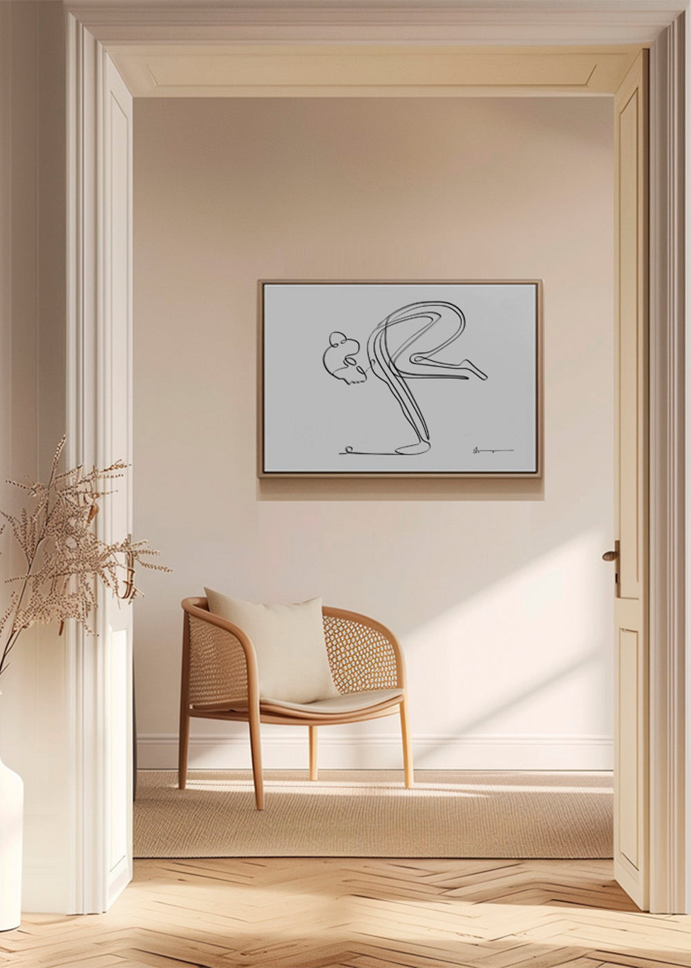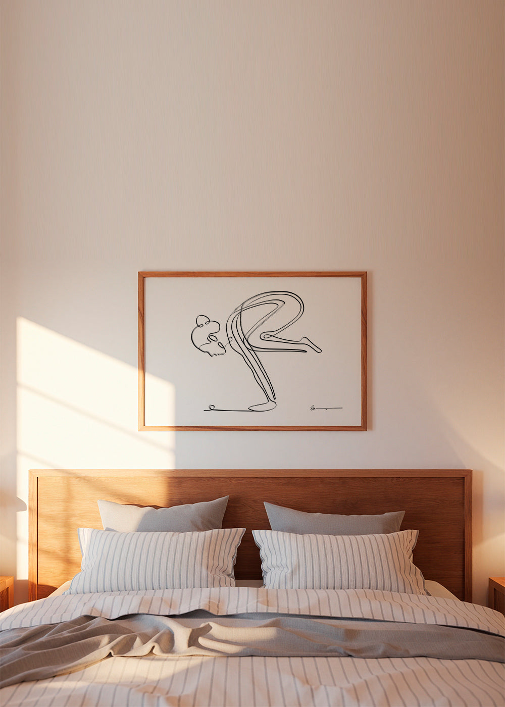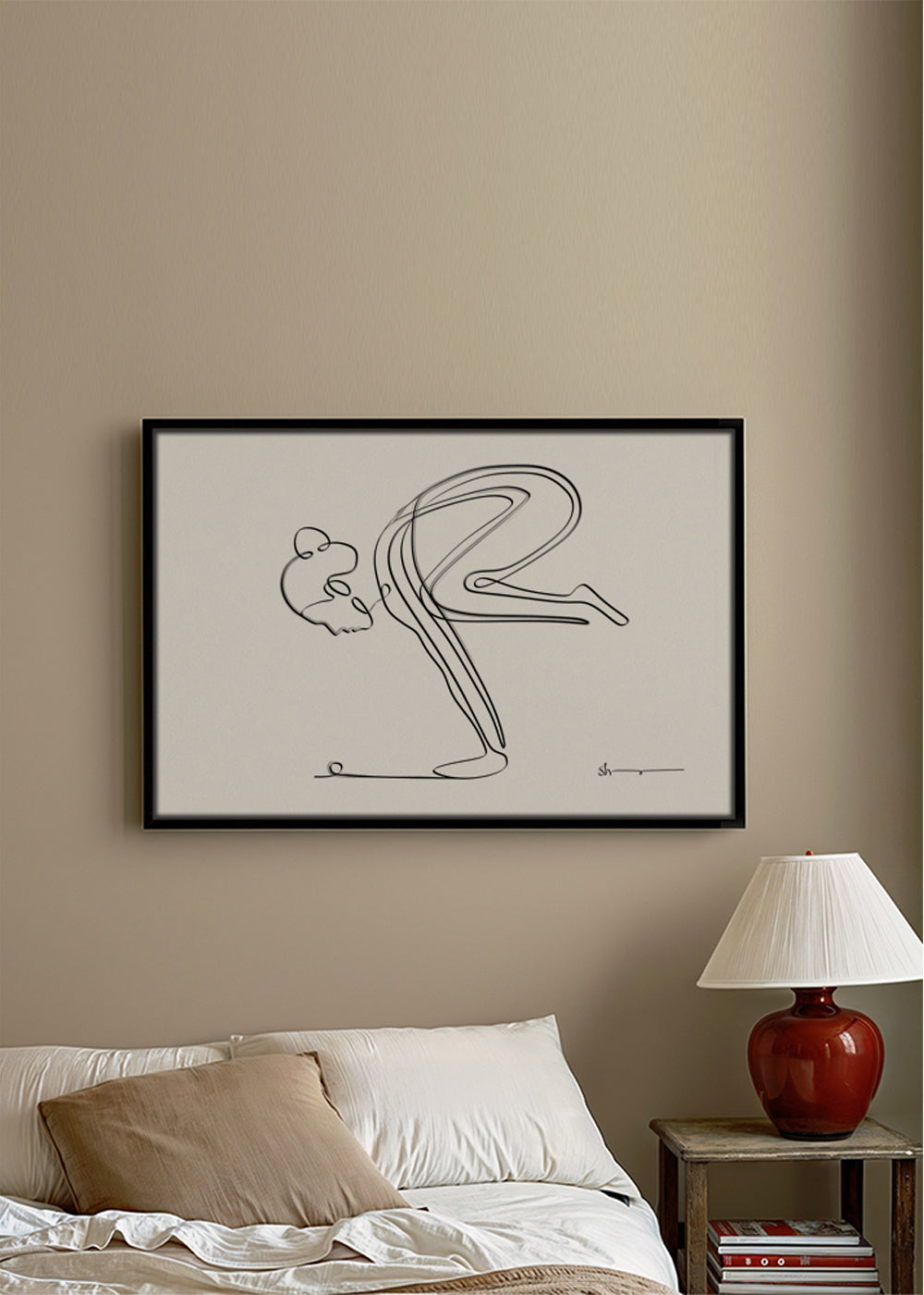 Un póster perteneciente a la categoría de cuadros de líneas, de la colección de Yoga in Art, con matices de colores monocromáticos, y en formato horizontal. Se trata de una ilustración de estilo sencillo y limpio, combínala con otras ilustraciones para obtener una composición artística. Olvídate de las paredes aburridas y sosas.