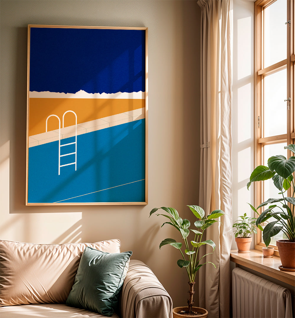 Esta pieza de la serie de cuadros de natación, hecha por 1x, con colores azules, y de disposición vertical. Una obra ideal para espacios que derrochan arte y creatividad. Nuestras ilustraciones son ideales para decorar espacios vacíos o aburridos. Libera tu espíritu creativo y decora tus paredes con arte.