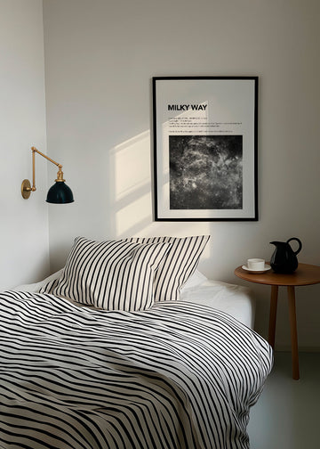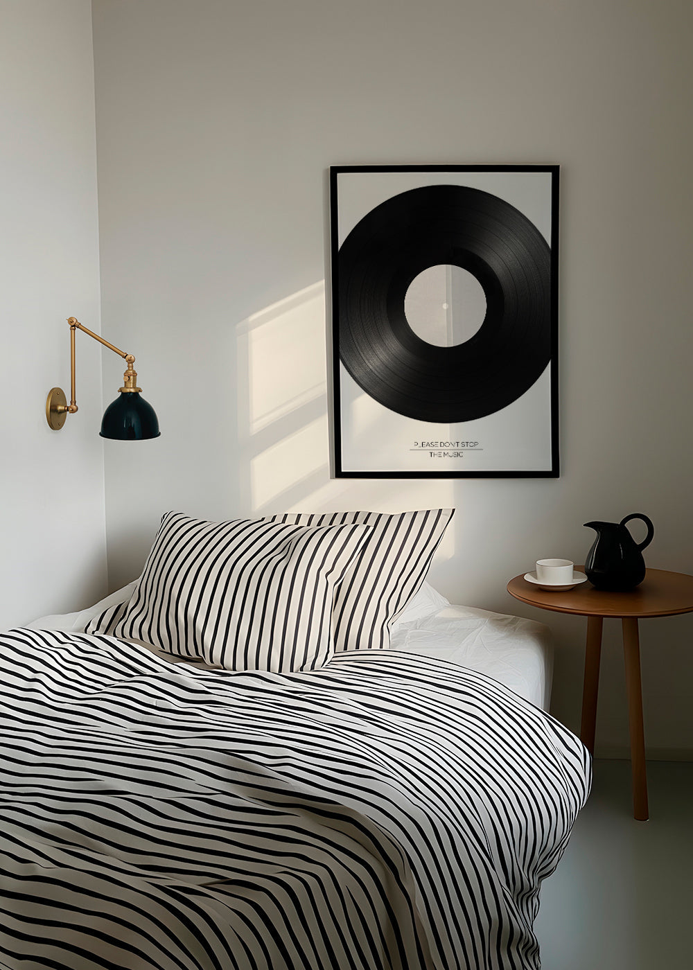 Un póster de la serie de cuadros musicales, que nos presenta Muthyger, con pigmentos monocromáticos, y para colocar en posición vertical. Si estás buscando una obra que combine con cualquier tonalidad, esta obra en blanco y negro es ideal. Combínala con diseños con color o bien con otros cuadros en blanco y negro Los detalles marcan la diferencia.