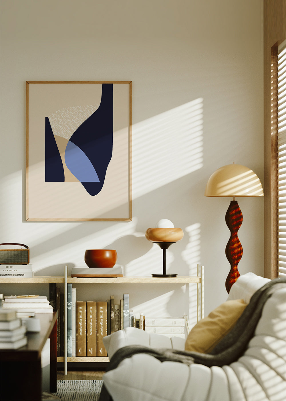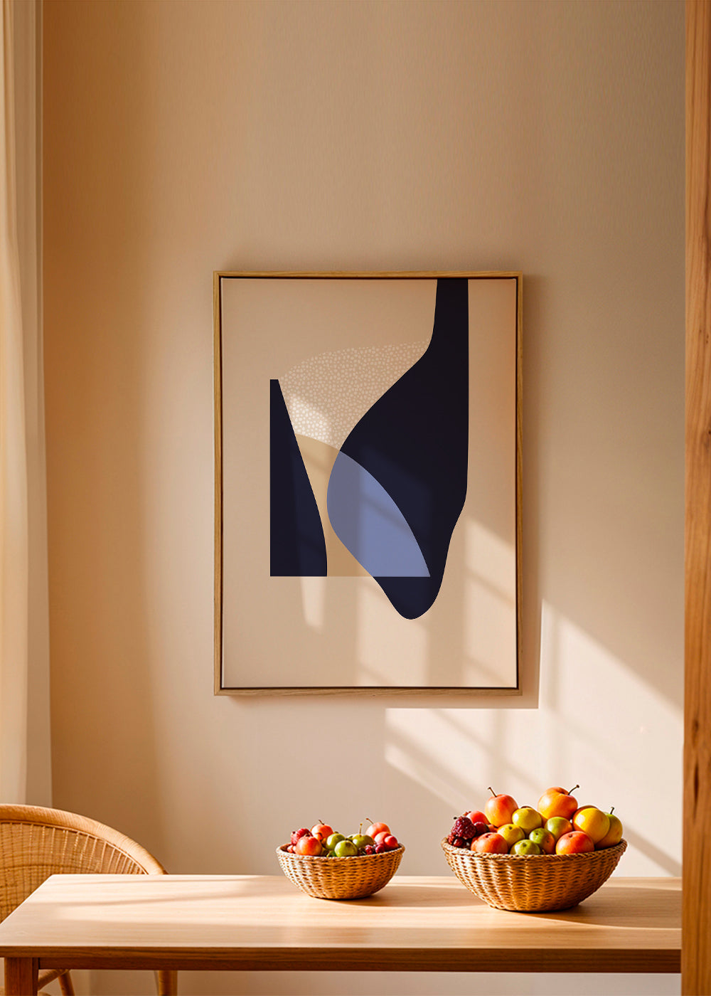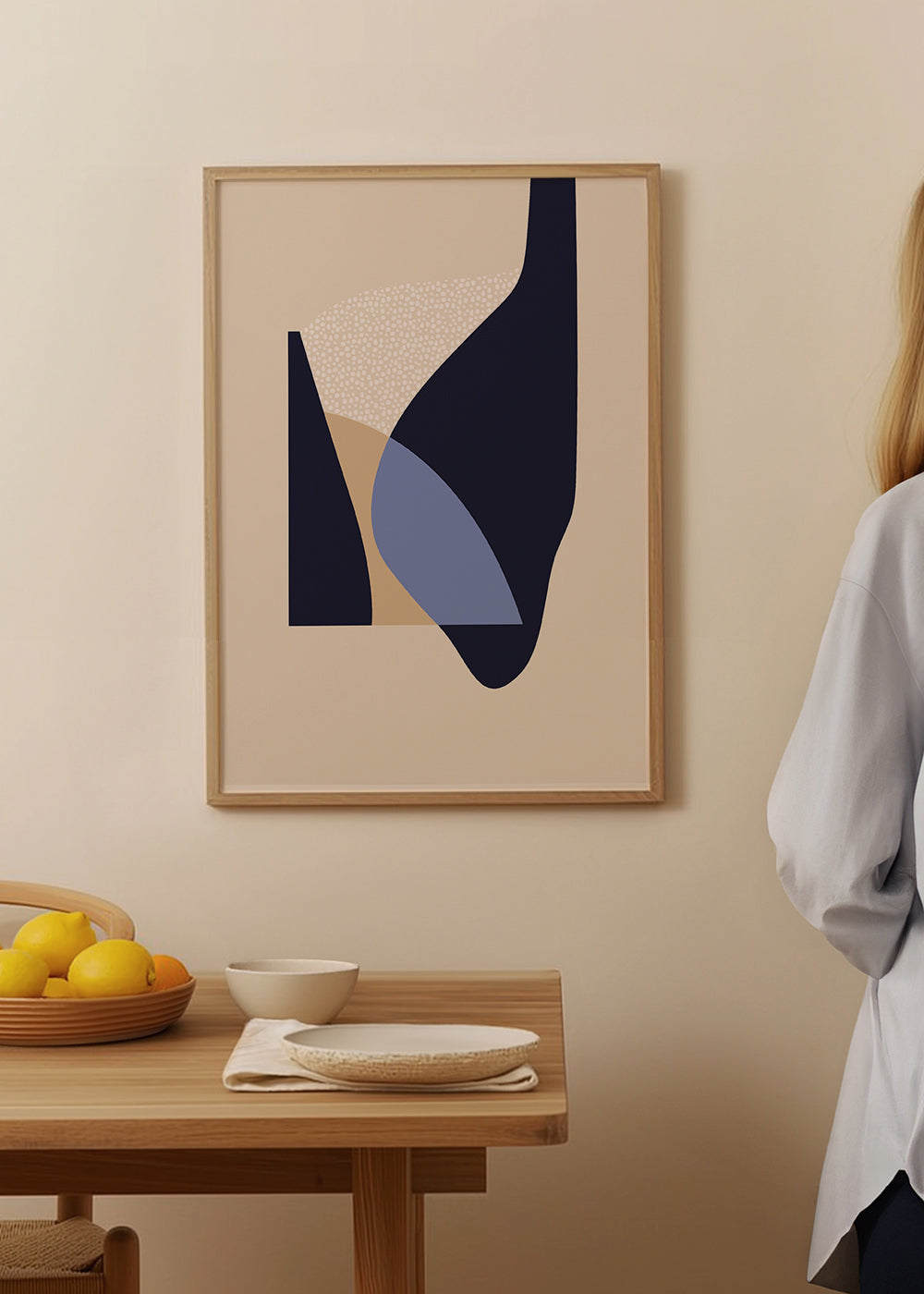 Un póster del estilo de nuestros cuadros geométricos, que nos presenta Anna Mainz, con pigmentos azules, y de formato vertical. Las formas geométricas y abstractas ayudan a crear un ambiente desenfadado y creativo. Juega con diferentes combinaciones de nuestras obras para conseguir el estilo que buscas.