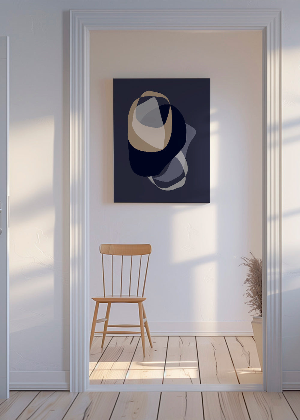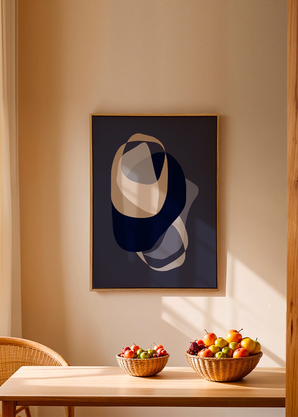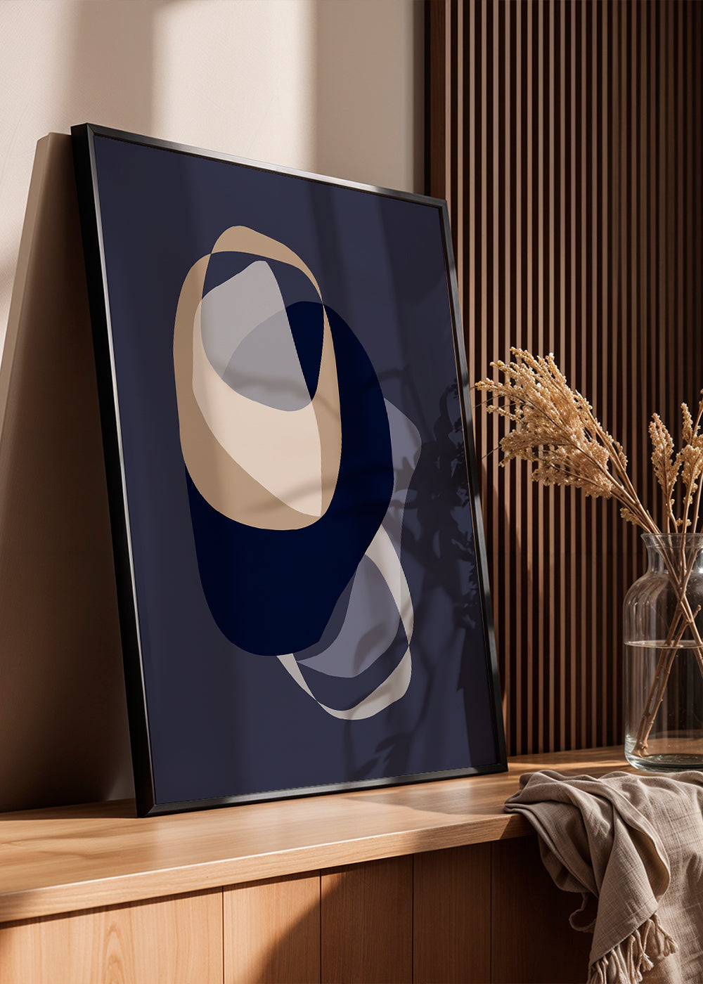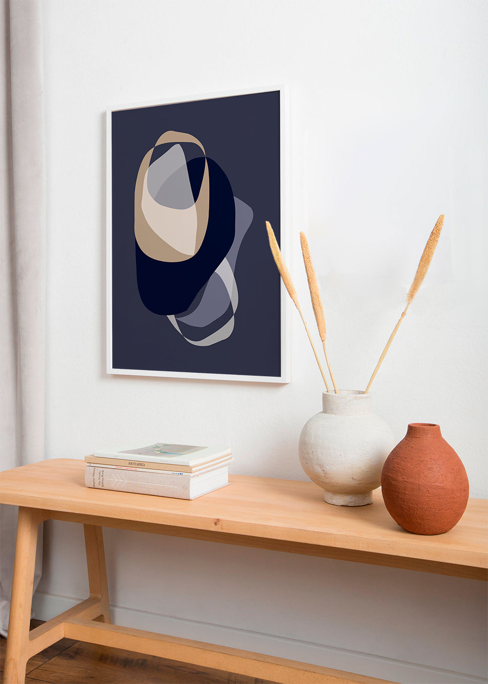 Esta lámina con inspiración en nuestra colección de cuadros geométricos, concebida por Anna Mainz, en tonalidades de colores azules, y para colgar en posición vertical. Las formas geométricas y abstractas ayudan a crear un ambiente desenfadado y creativo. Selecciona el tamaño que mejor encaje en tu decoración.