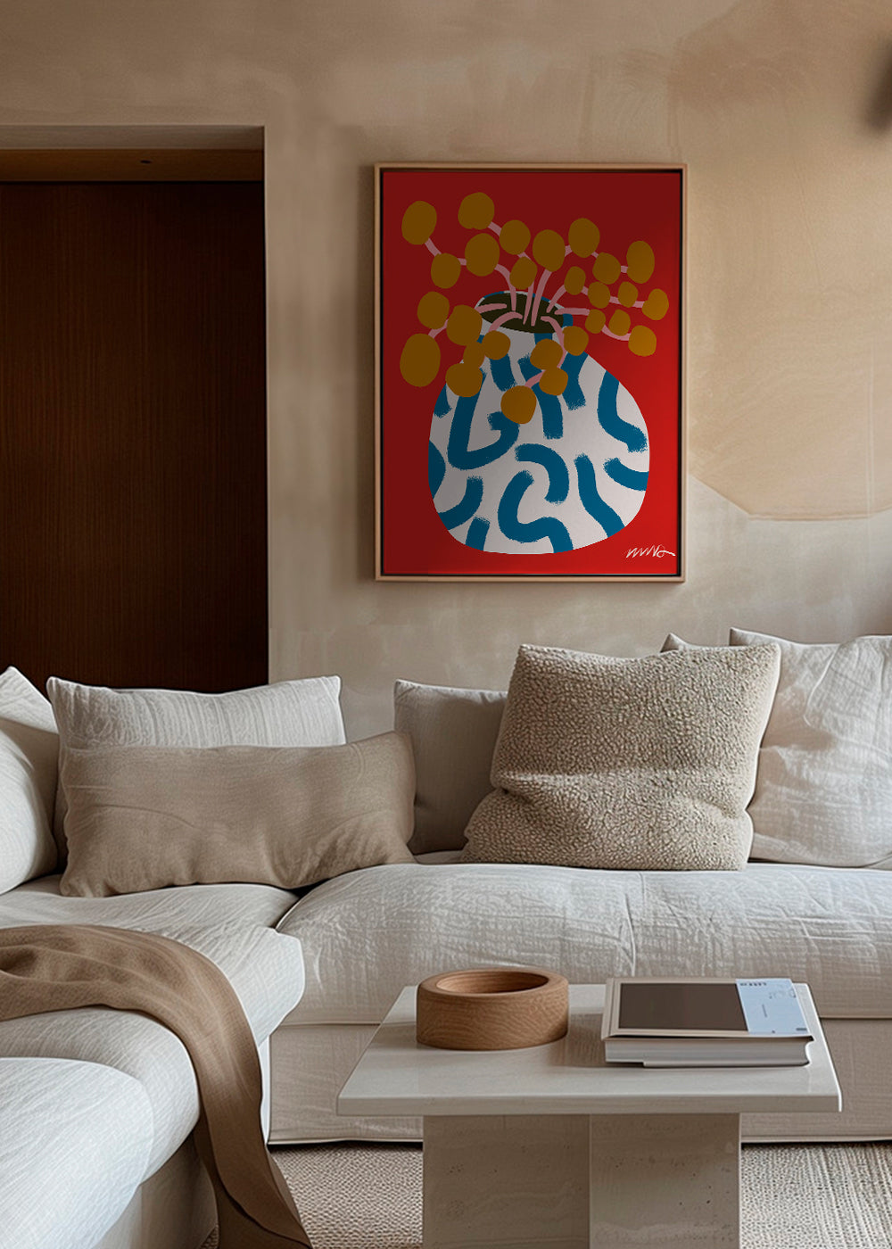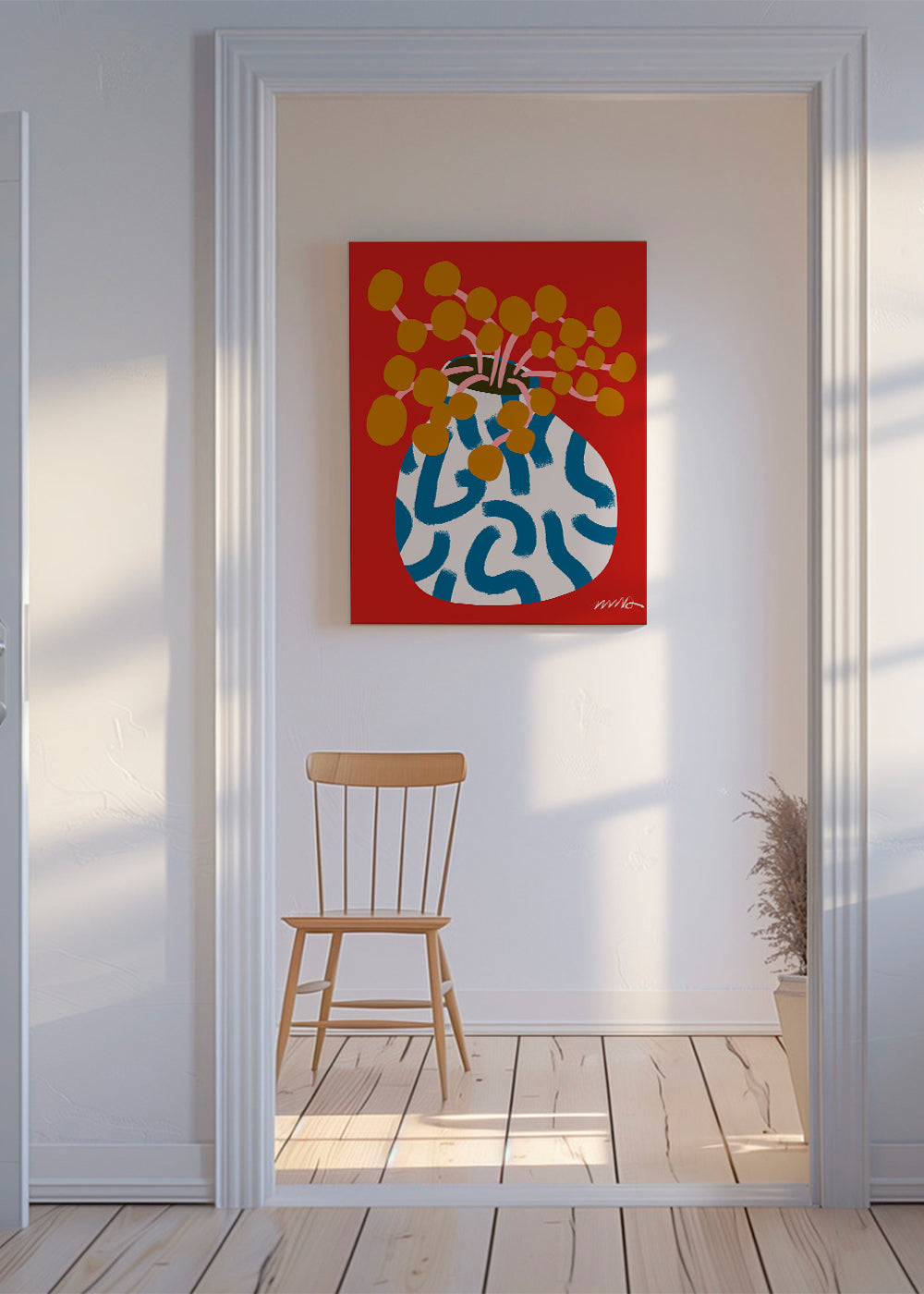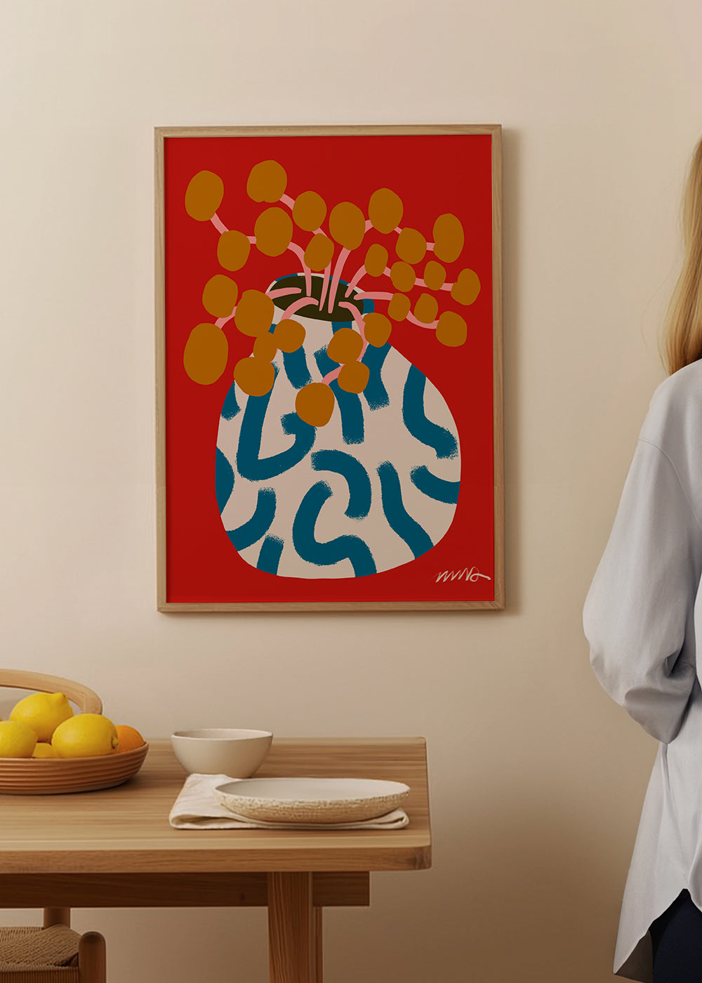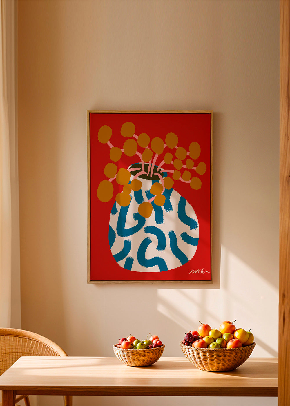Un póster de la colección cuadros y láminas con ilustraciones, de la mano de Vaanzaal, con matices de colores rojos, y ideal para poner en posición vertical. Los cuadros con ilustraciones son ideales para combinar con arte minimalista y abstracto. Las paredes decoradas con cuadros son el no va más.