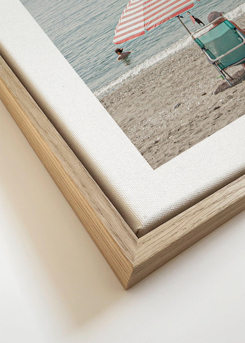 Si seleccionas la opción passepartout, añadiremos el recuadro de cartón blanco al marco, y reduciremos el diseño de la obra. Por ejemplo, si seleccionas una lámina de tamaño 50x70, con marco de color roble y passepartout, reduciremos el diseño de la lámina al tamaño anterior (40x50cm). De esta manera, se adaptará perfectamente a la ventana interior del passepartout.