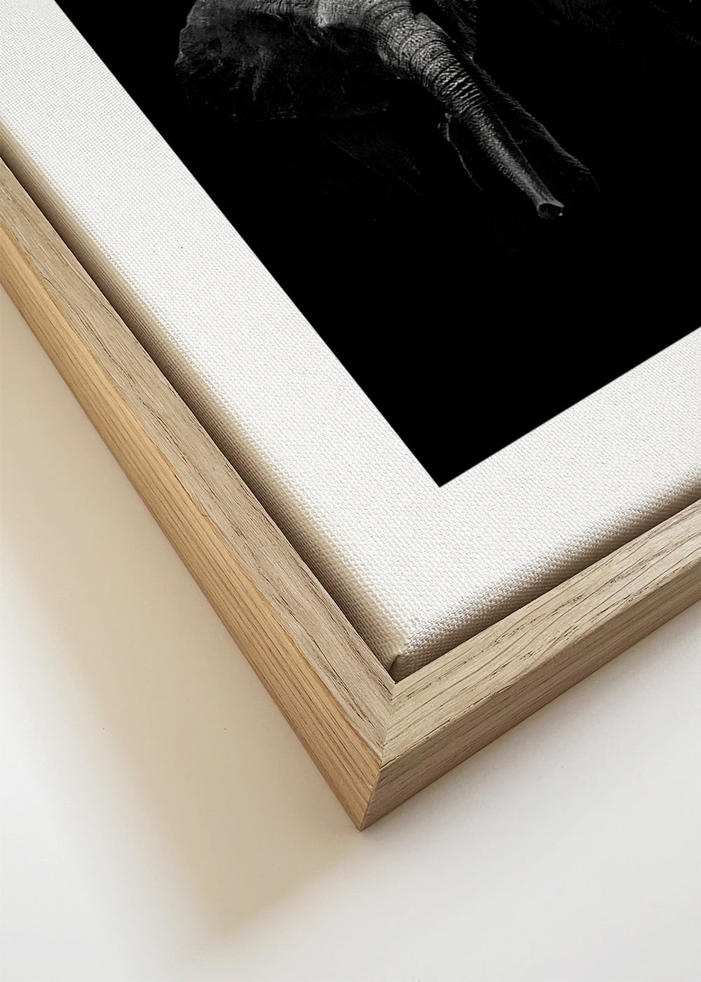 Si seleccionas la opción passepartout, añadiremos el recuadro de cartón blanco al marco, y reduciremos el diseño de la obra. Por ejemplo, si seleccionas una lámina de tamaño 50x70, con marco de color roble y passepartout, reduciremos el diseño de la lámina al tamaño anterior (40x50cm). De esta manera, se adaptará perfectamente a la ventana interior del passepartout.