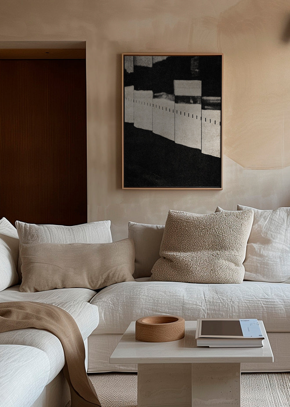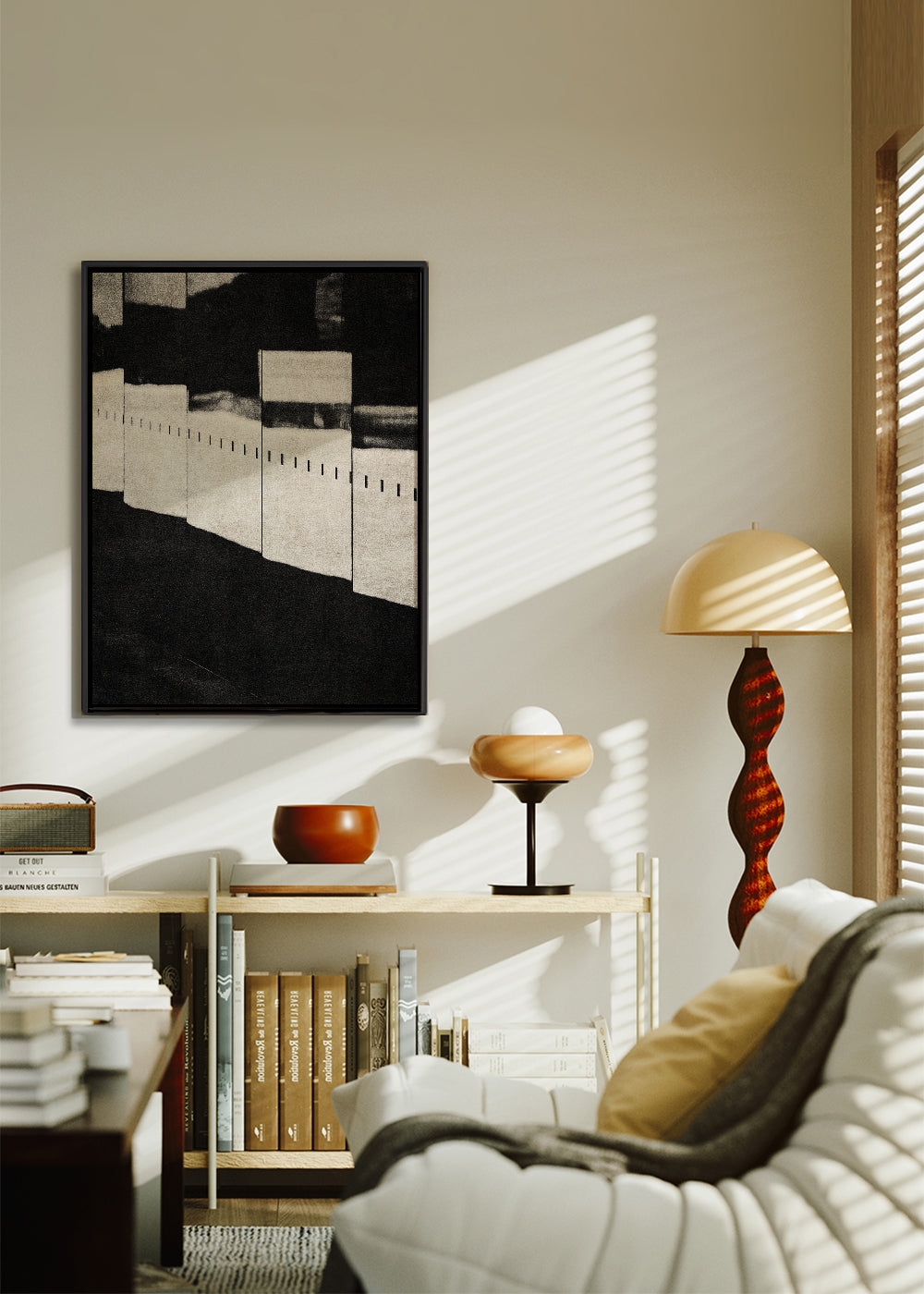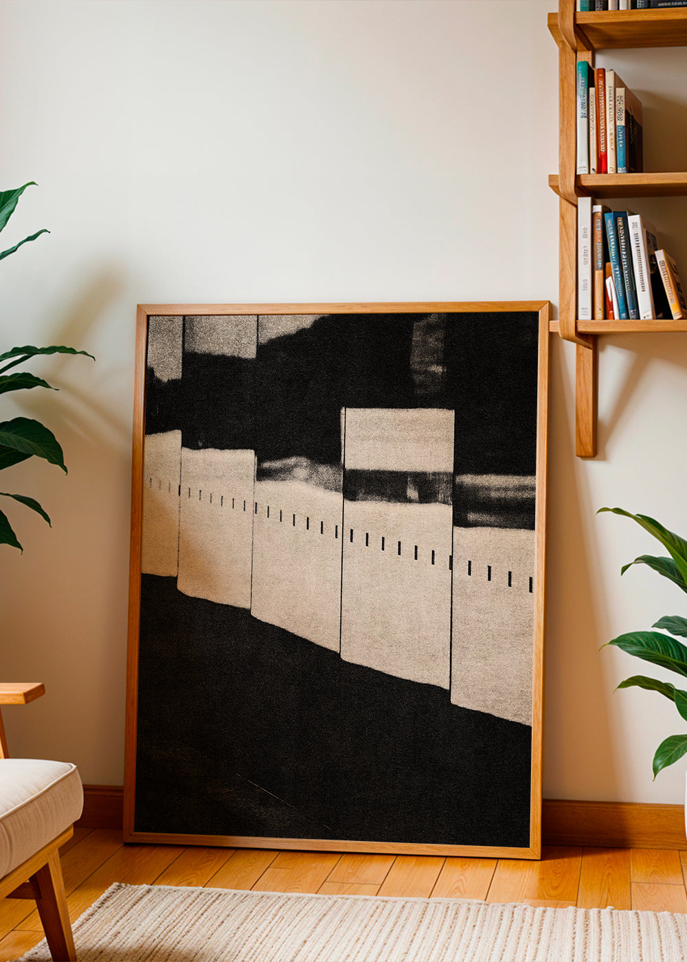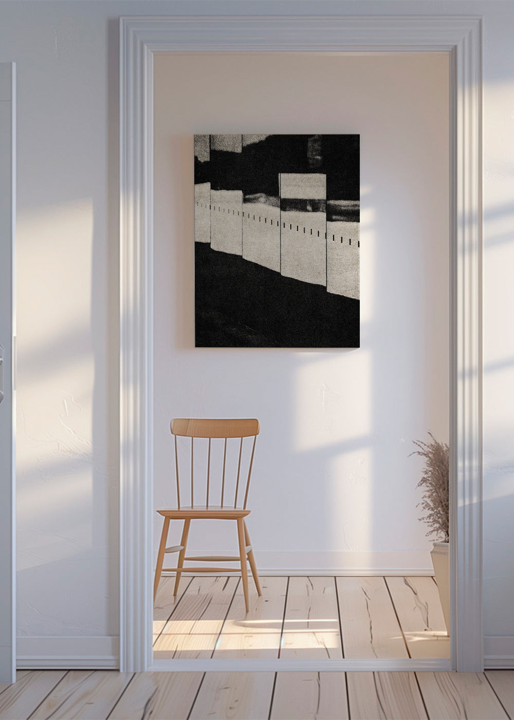 Bonito póster de nuestra selección de cuadros abstractos, de la colección de Daniel Coulmann, con pigmentos negros, y ideal para poner en posición vertical. Se trata de una obra de arte abstracto que dará un toque moderno al diseño de tus espacios. Elegancia inspirada por el arte.