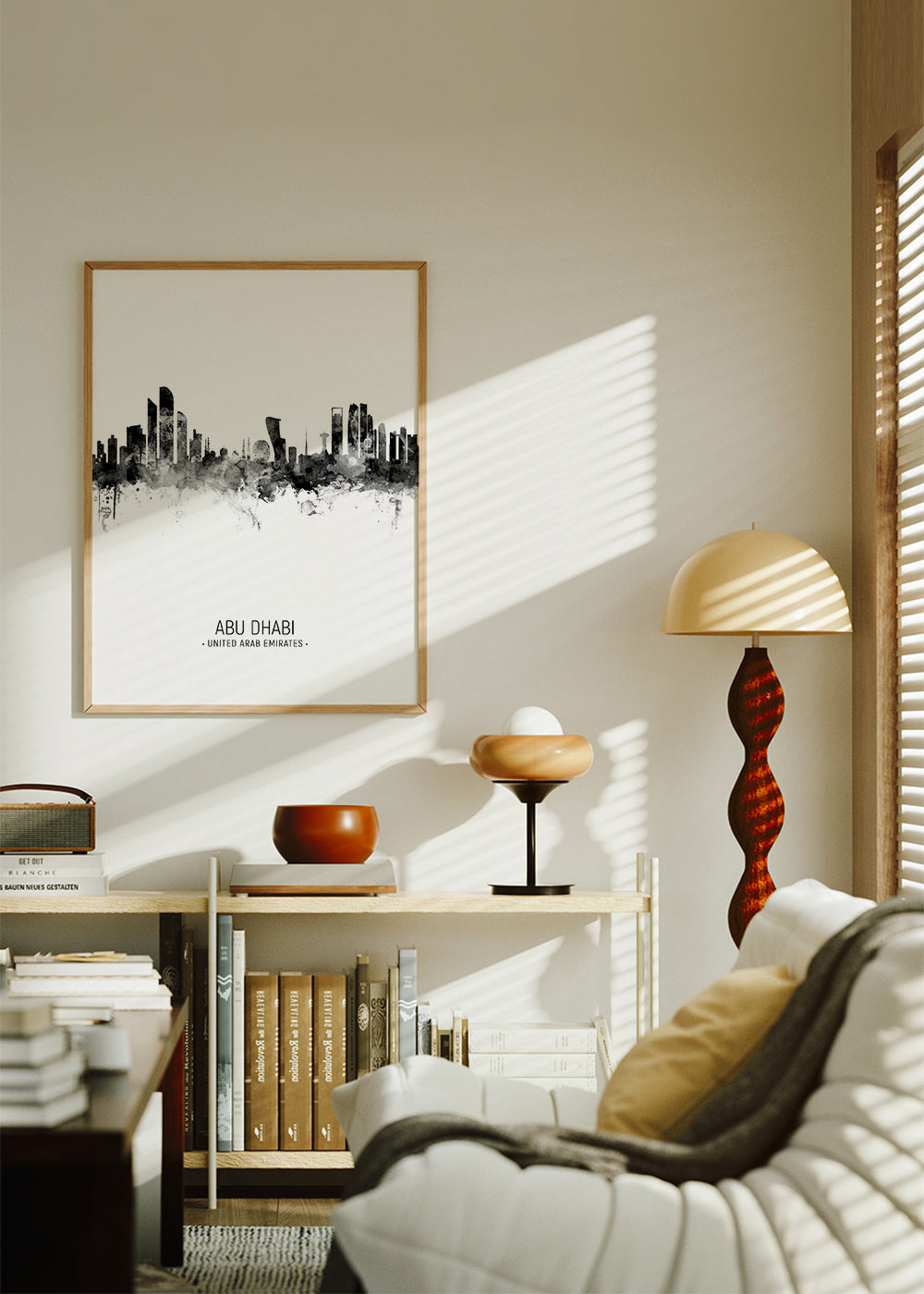 Cuadro nórdico Abu Dhabi Skyline blanco y negro