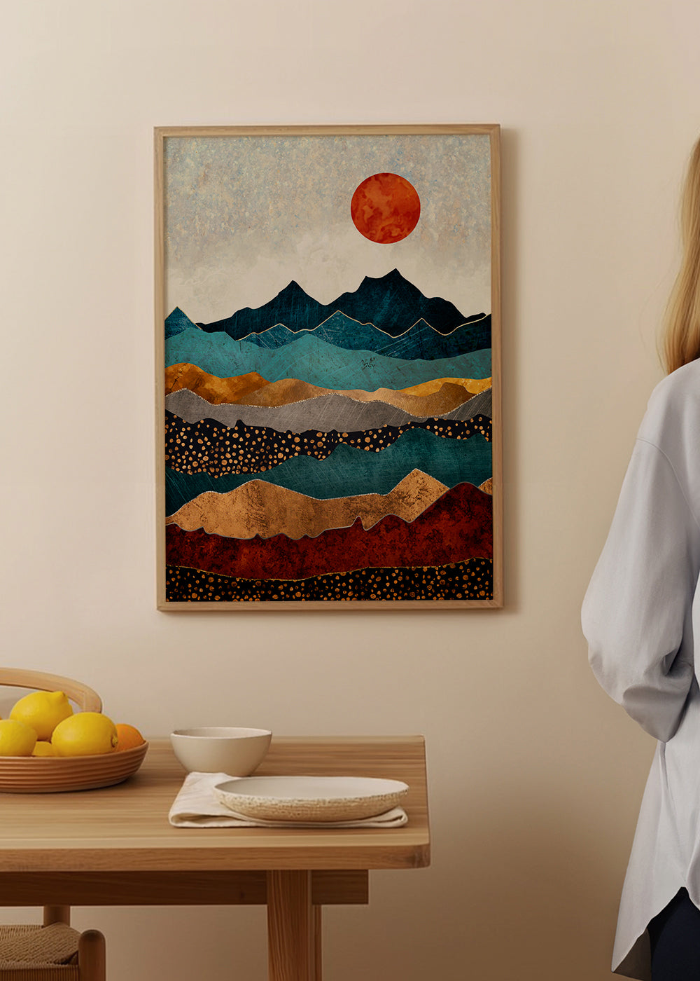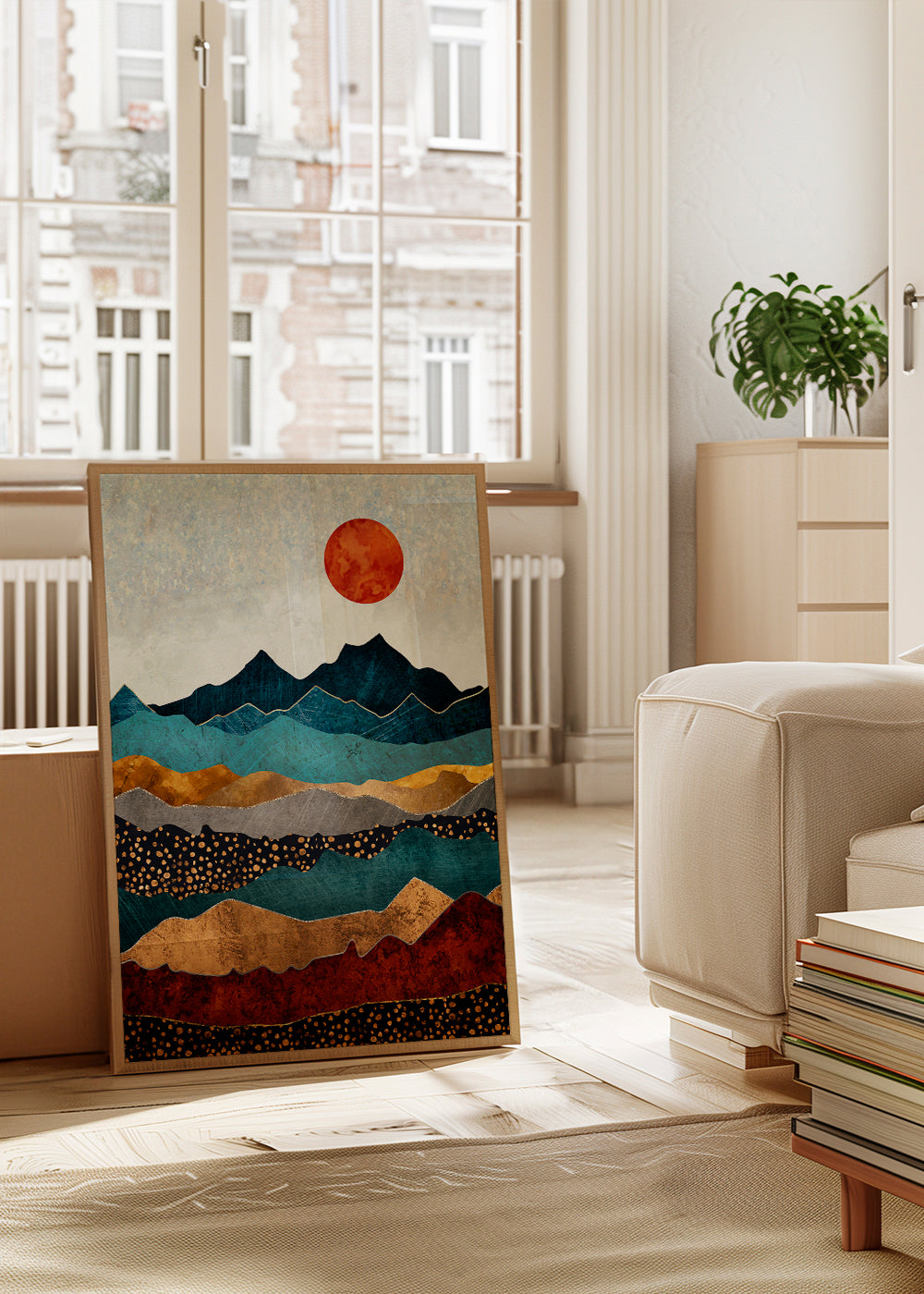 Un póster de la colección cuadros de paisajes y naturaleza, perteneciente a la colección de SpaceFrog Designs, en tonalidades de colores rojos, y con orientación vertical. La decoración con paisajes aporta un aire fresco a cualquier interior. Puro arte y diseño.