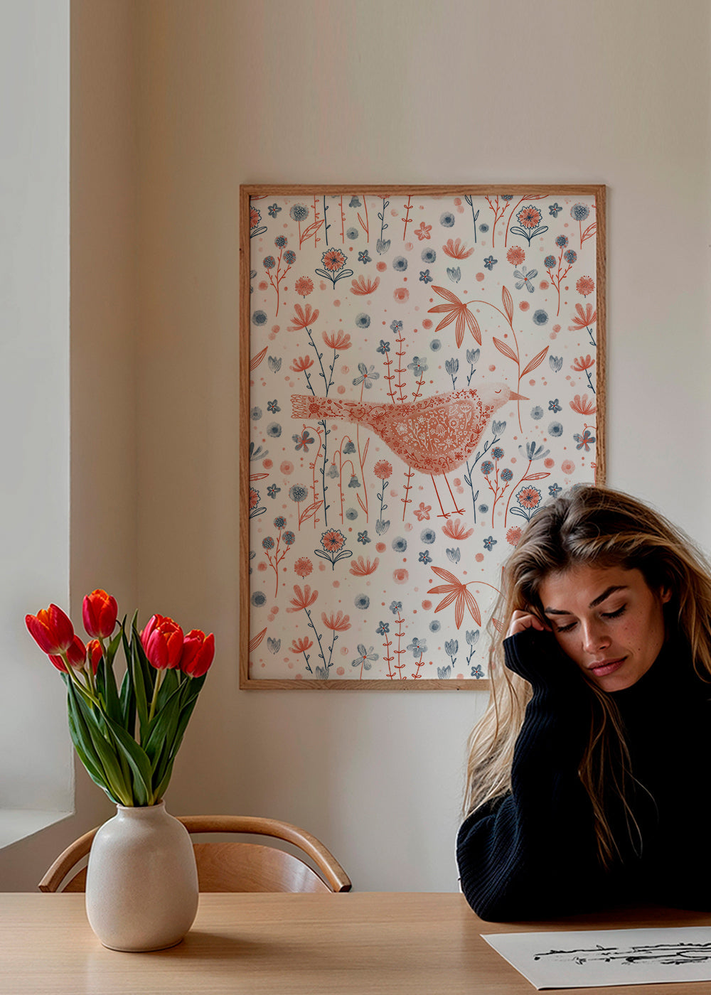 Un póster de la serie de cuadros de pájaros, concebida por Nic Squirrell, con toques rojos, y para colocar en posición vertical. Una obra de arte de estilo minimalista con un diseño sencillo y fácil de combinar. Decorar las paredes con cuadros minimalistas es una forma de aportar estilo y originalidad a la decoración. Crea rincones especiales.