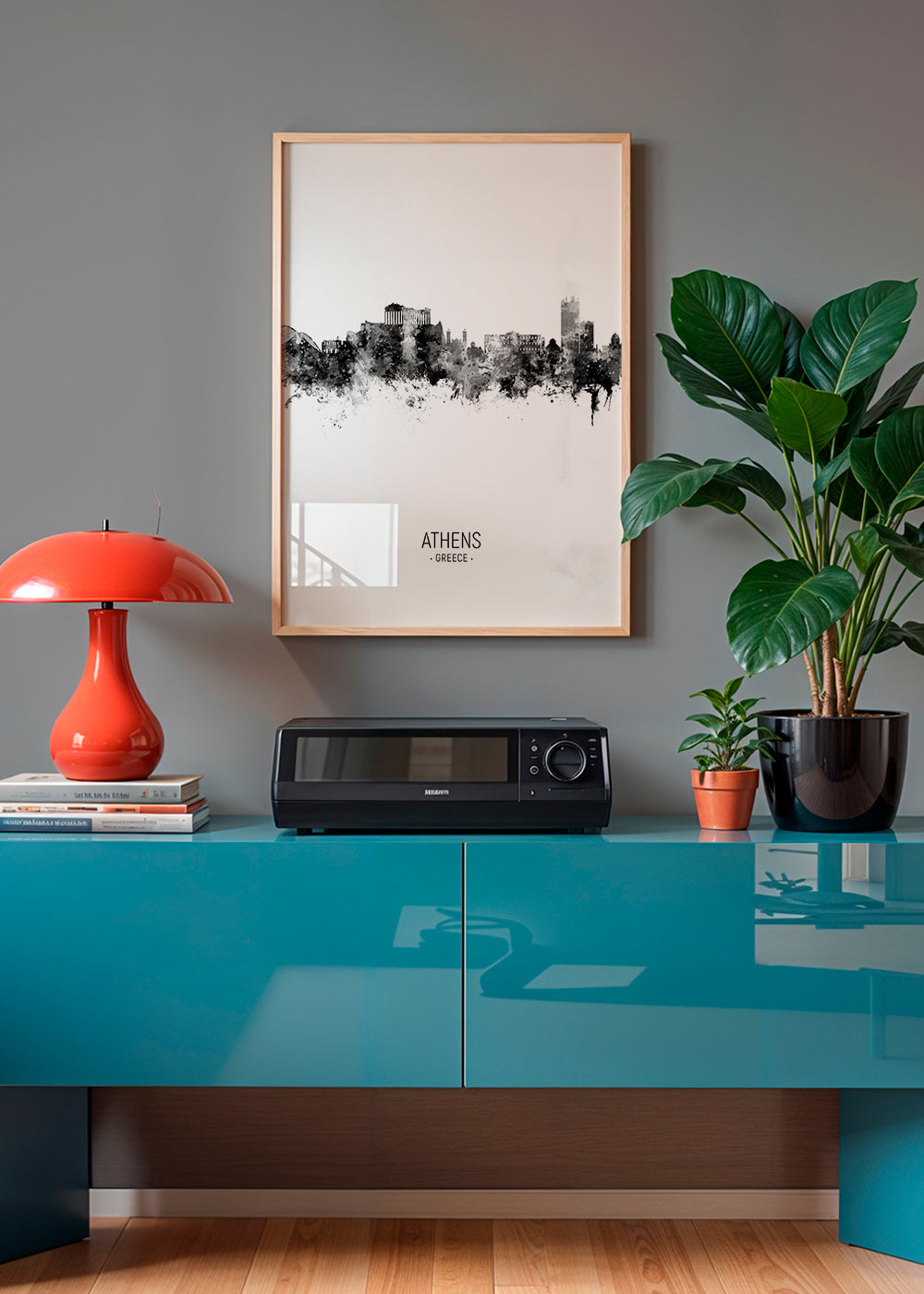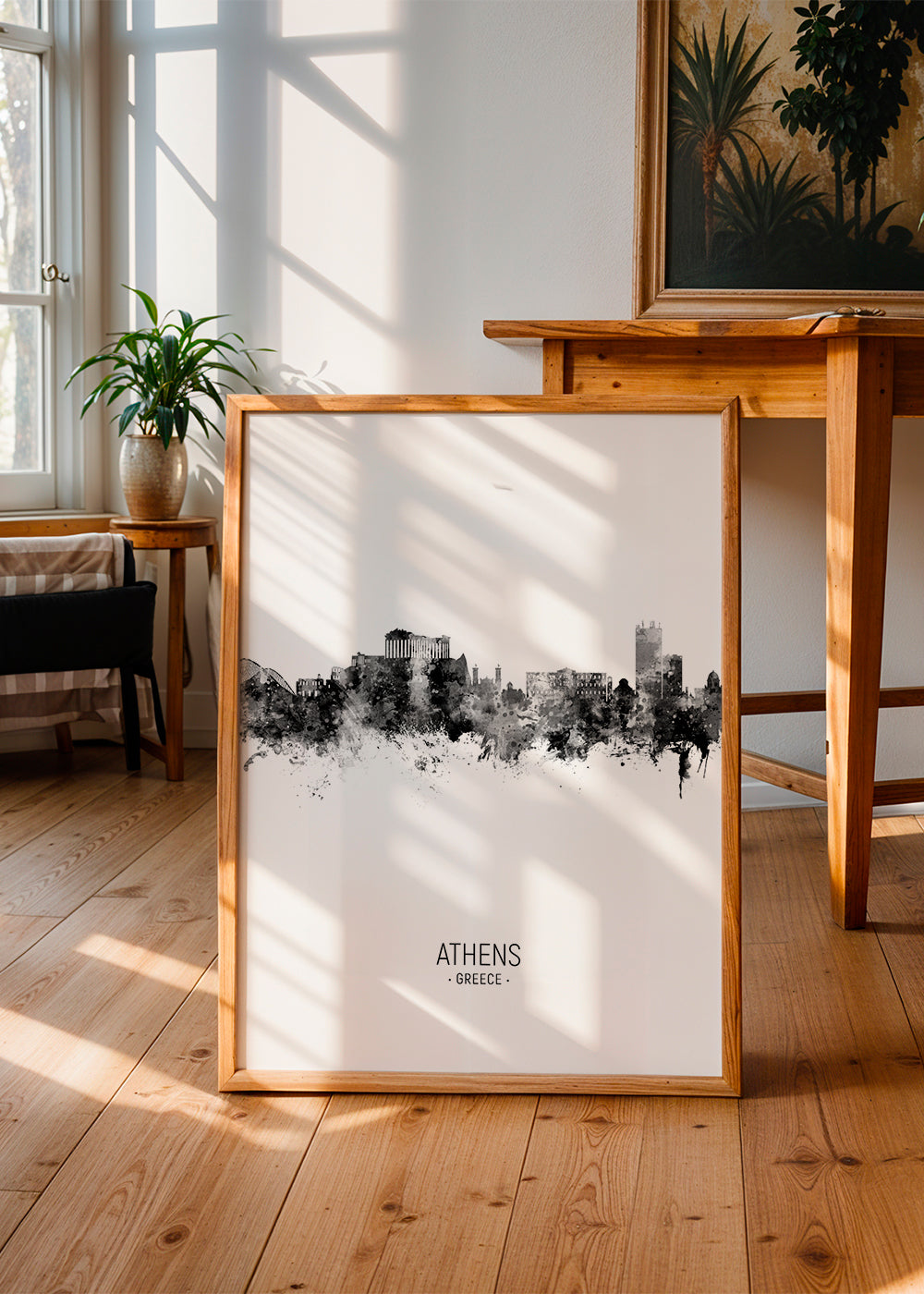 Cuadro nórdico Athens Skyline blanco y negro