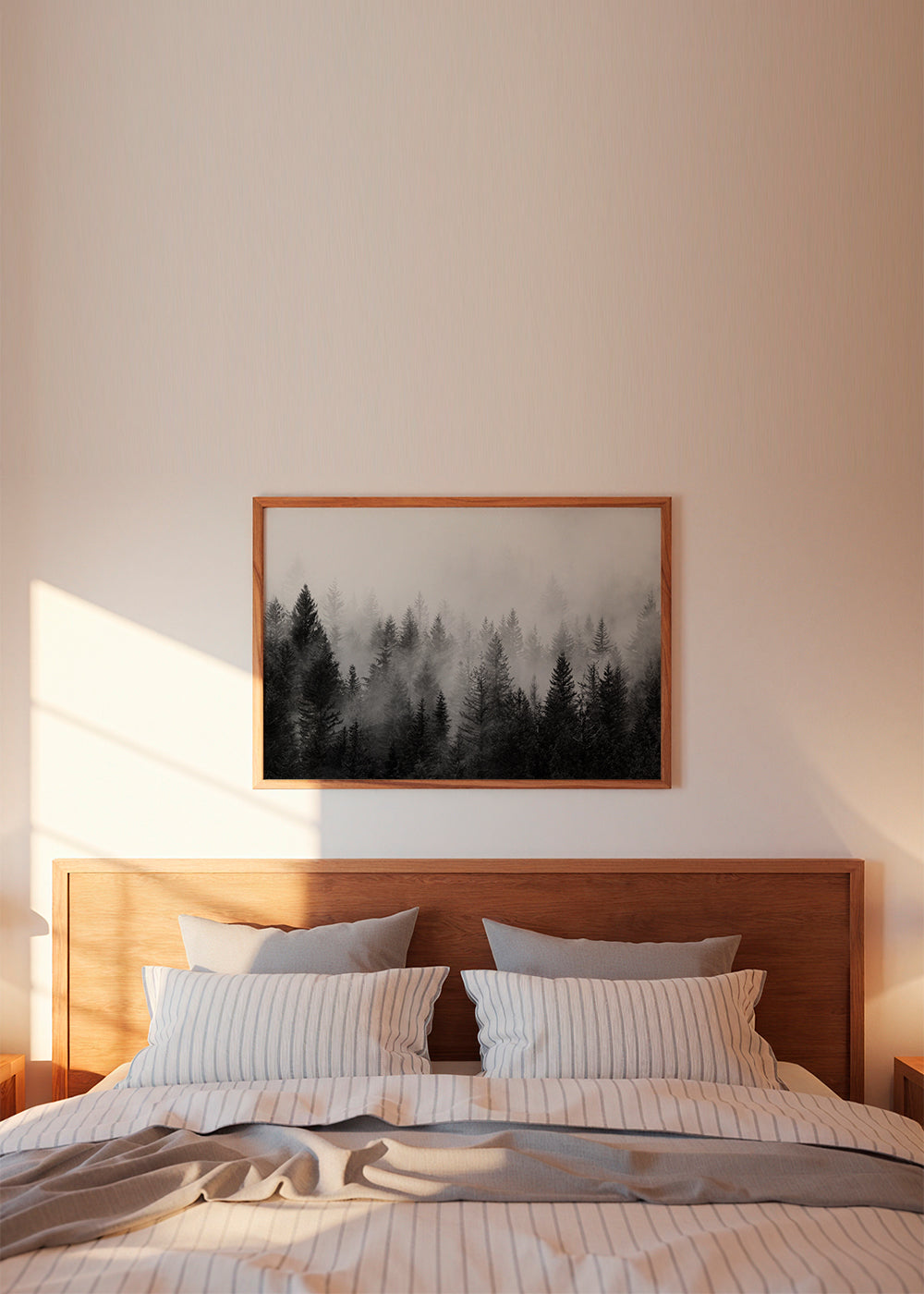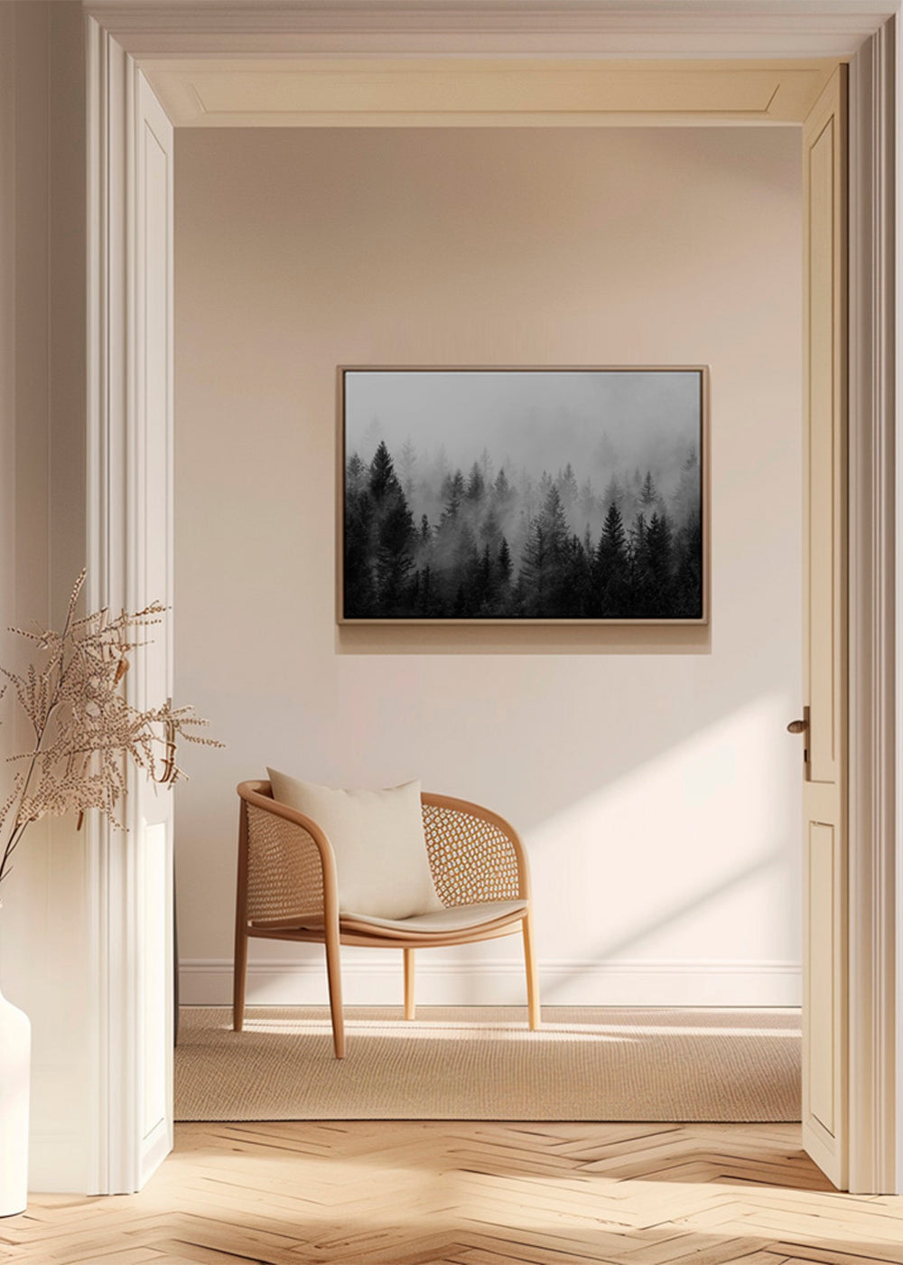 Un póster de la colección cuadros de bosque y selva, de la colección de Seven Trees Design, en tonalidades de colores monocromáticos, y de posición horizontal. La naturaleza en su máximo esplendor, los cuadros con paisajes transmiten mucha calma. Selecciona el tamaño que mejor encaje en tu decoración.