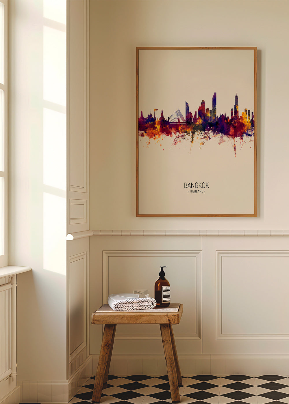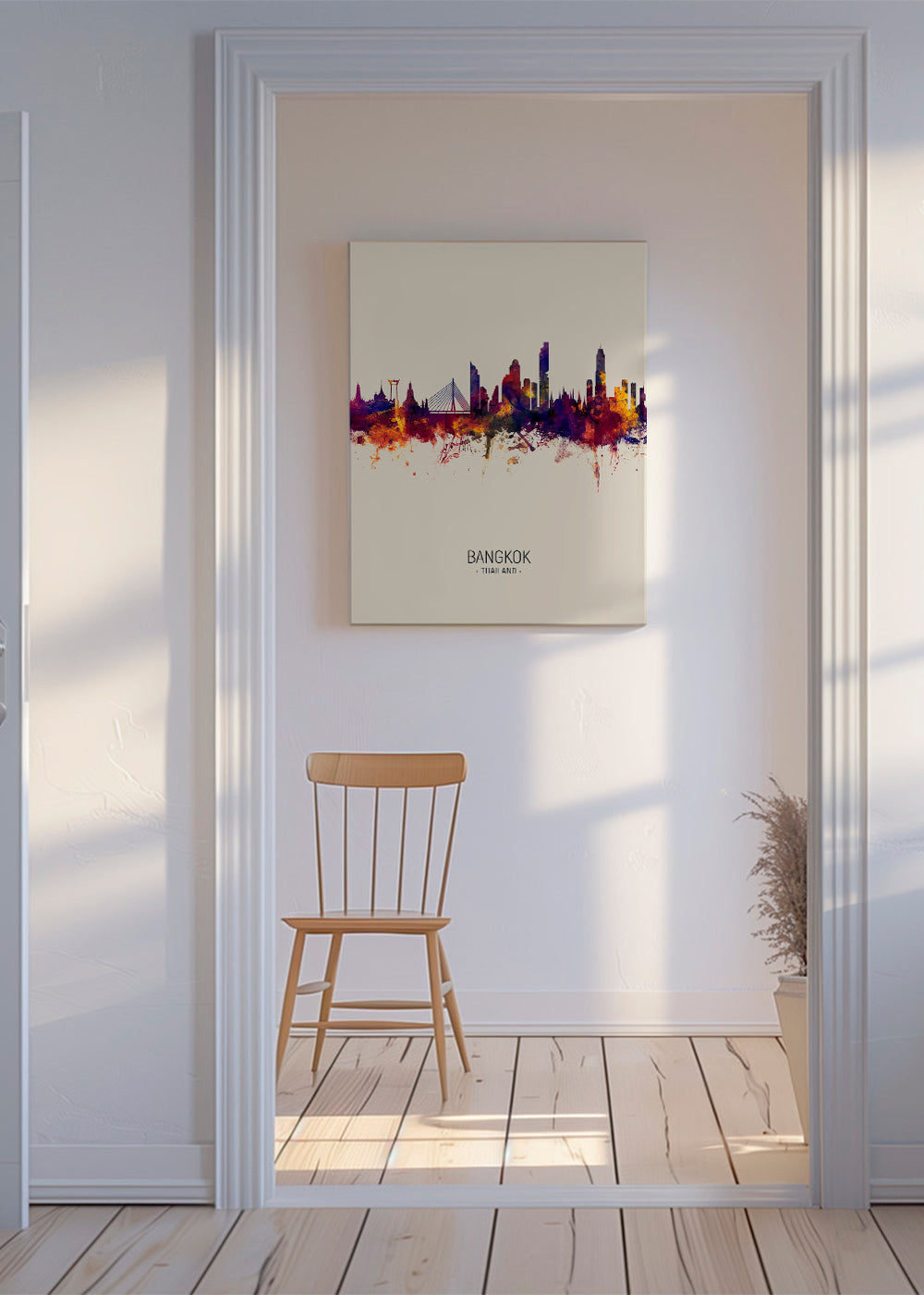 Esta obra del estilo de nuestros cuadros de skylines, creada por Michael Tompsett, con toques multicolor, y orientada en vertical. Un cuadro ideal para los viajeros empedernidos. Combínalo con otros de nuestros cuadros de mapas y ciudades. Dale un nuevo aire a la decoración de tu casa.