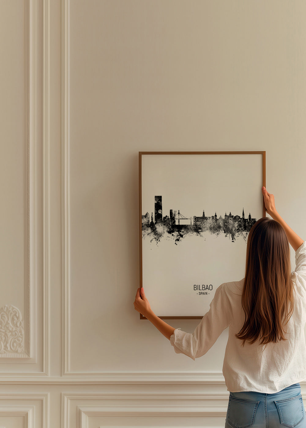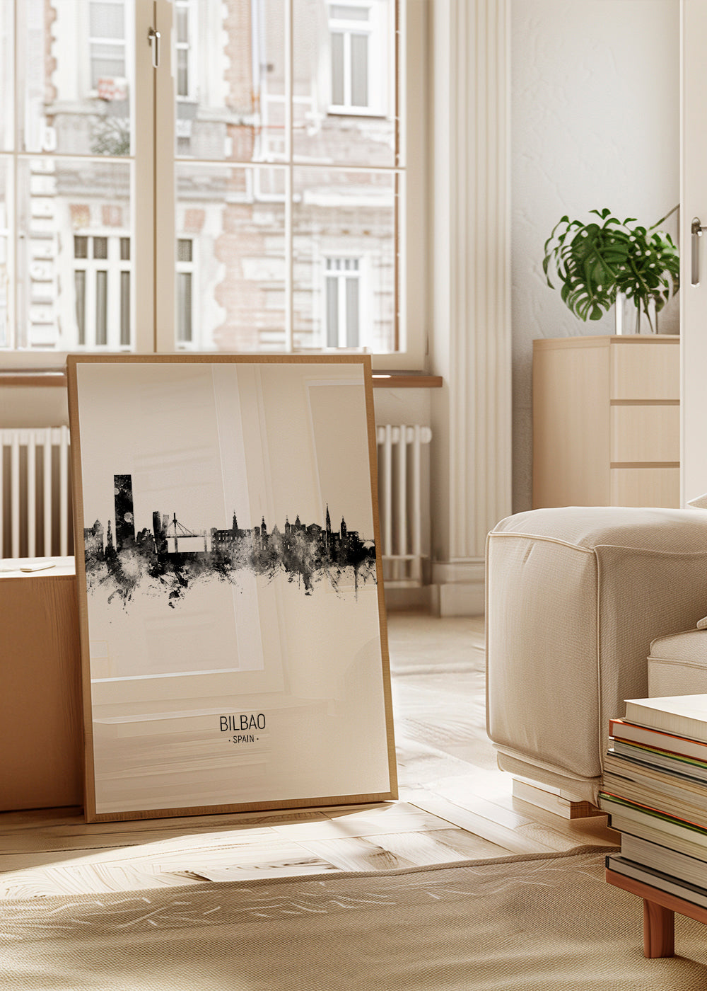 Cuadro nórdico Bilbao Skyline blanco y negro