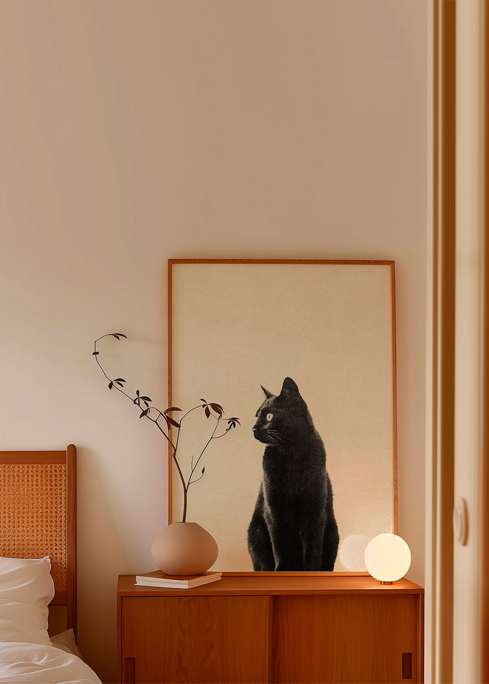 Un póster de nuestra selección de cuadros de gatos, original de Daniel Coulmann, con tonalidades de colores negros, y para colgar en posición vertical. Las láminas de animales nos permiten mostrar nuestro lado más salvaje en la decoración de las paredes. Déjate cautivar por el arte.