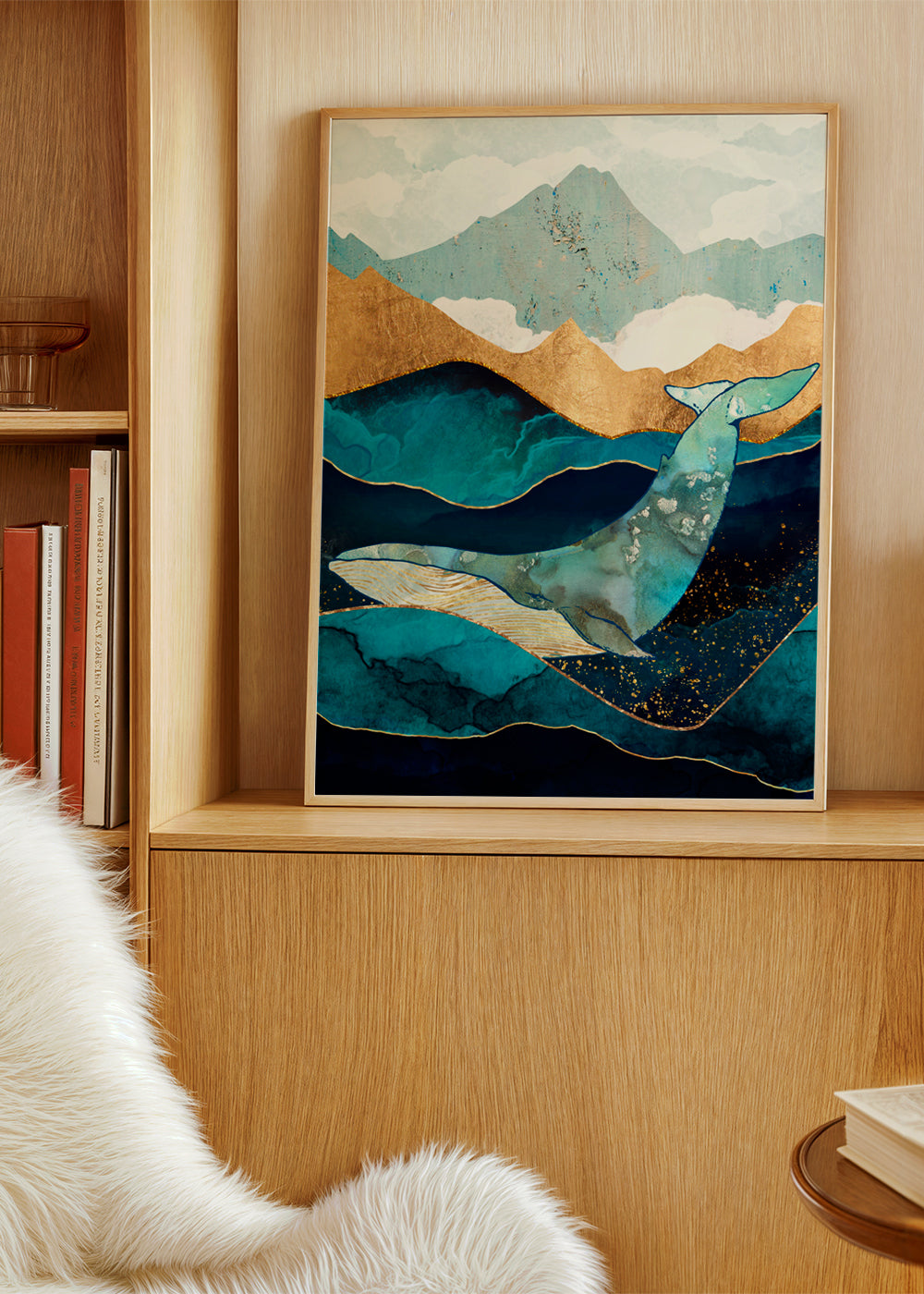 Una obra de nuestra categoría de cuadros de animales, creada por SpaceFrog Designs, en tonalidades de colores azules, y en formato vertical. Decorar con cuadros de animales es una forma de transmitir energía a través de tus paredes. Dales vida a las paredes de tu casa.